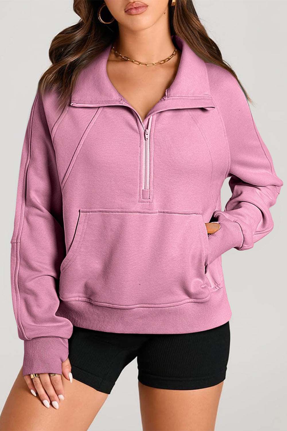 Aruba Blue Quarter Zip Stand Neck Kangaroo Pocket Sweatshirt