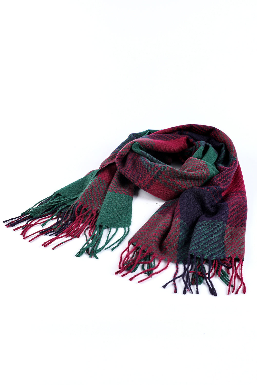 Racing Red Classic Christmas Plaid Fringed Scarf
