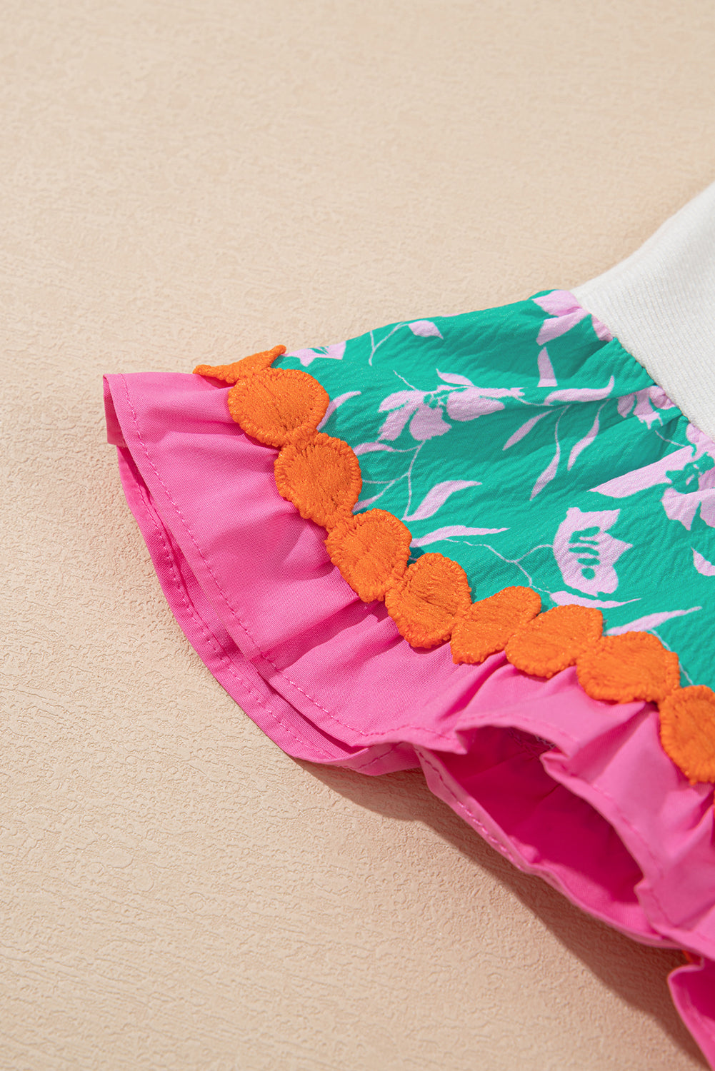 White Contrast Ricrac Floral Sleeve Top