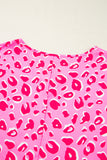 Pink Leopard V Neck Loose Short Sleeve Top