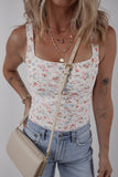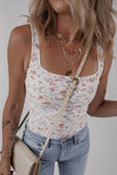 White Floral Textured Square Neck Sleeveless Bodysuit