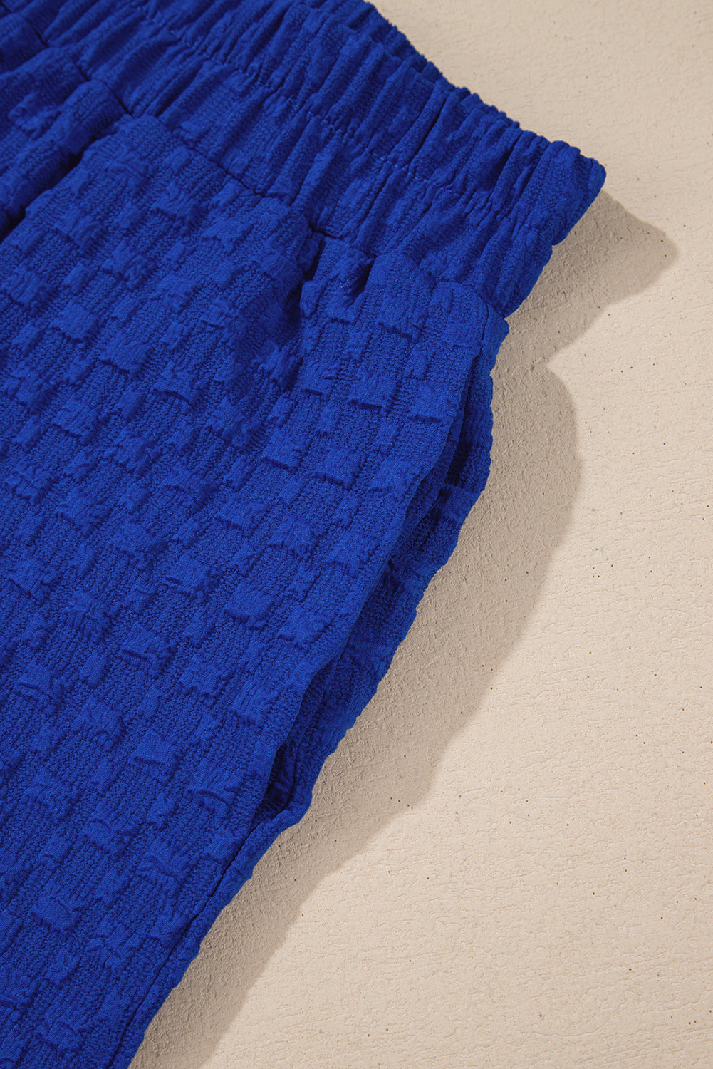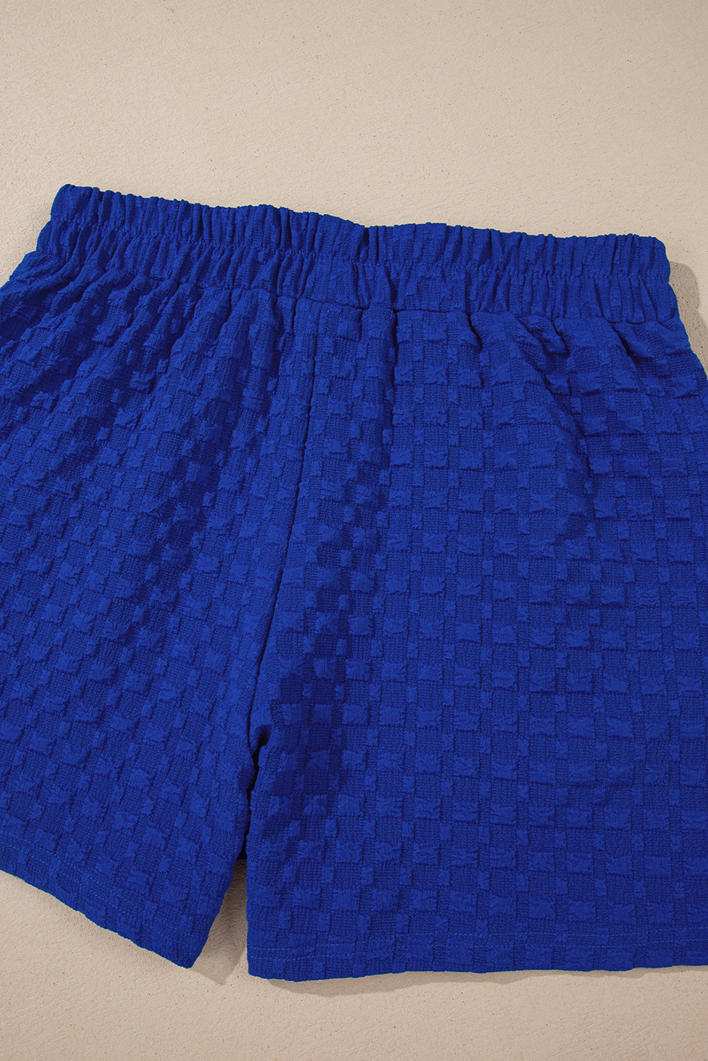 Sky Blue Jacquard Textured Buttoned Tee and Shorts Set