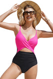 Rose Red Crossover Colorblock Cutout One Piece Swimsuit