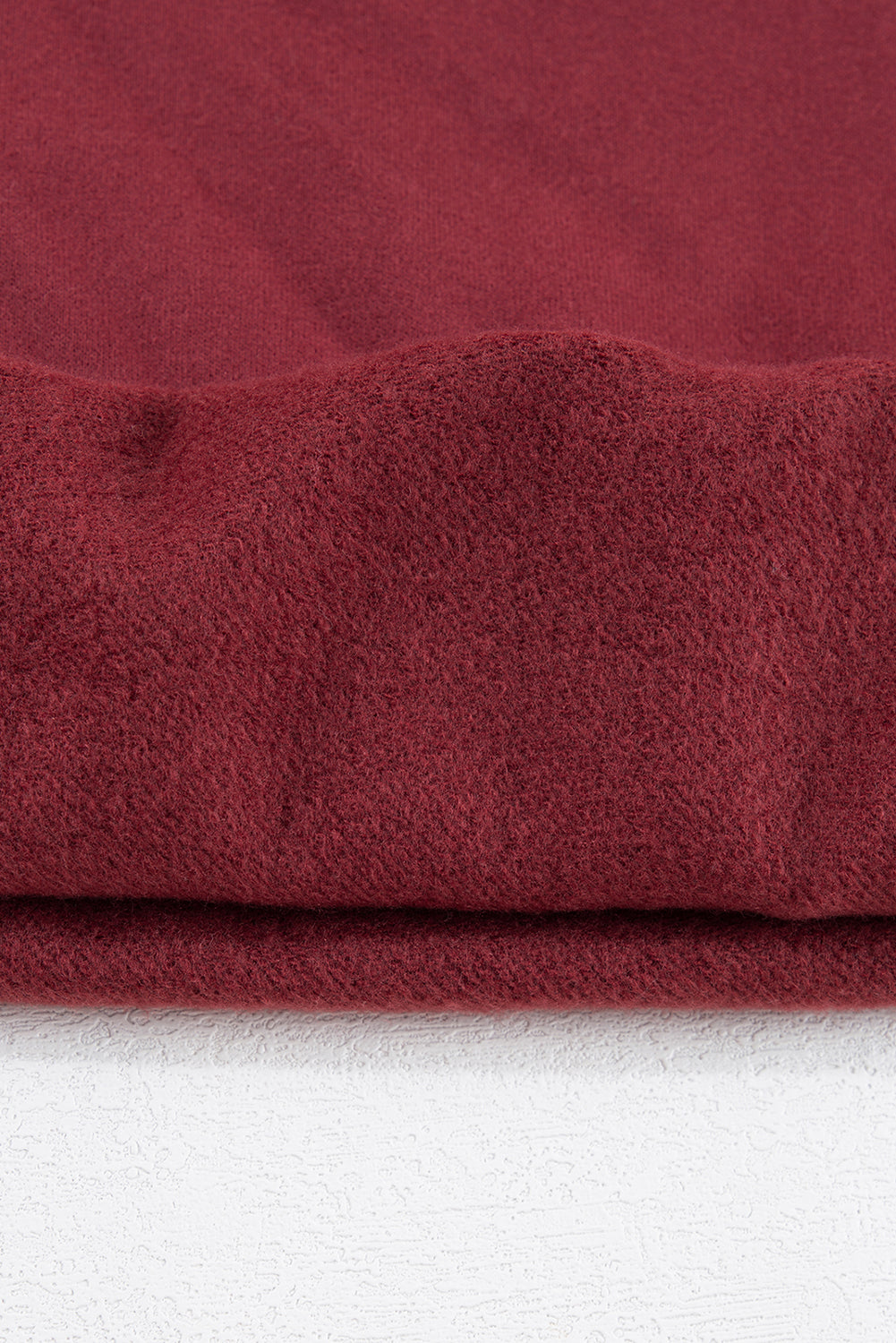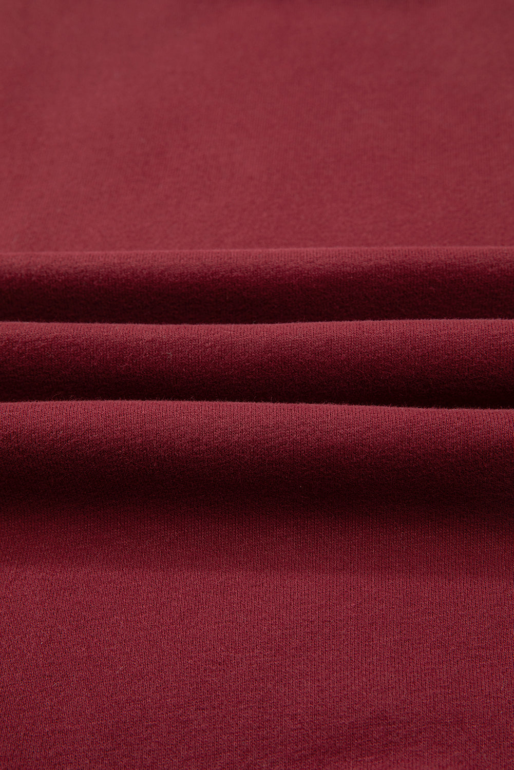 Burgundy Solid Fleece Lined Drop Shoulder Terry Sweatshirt