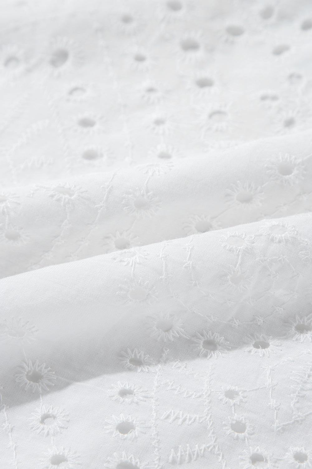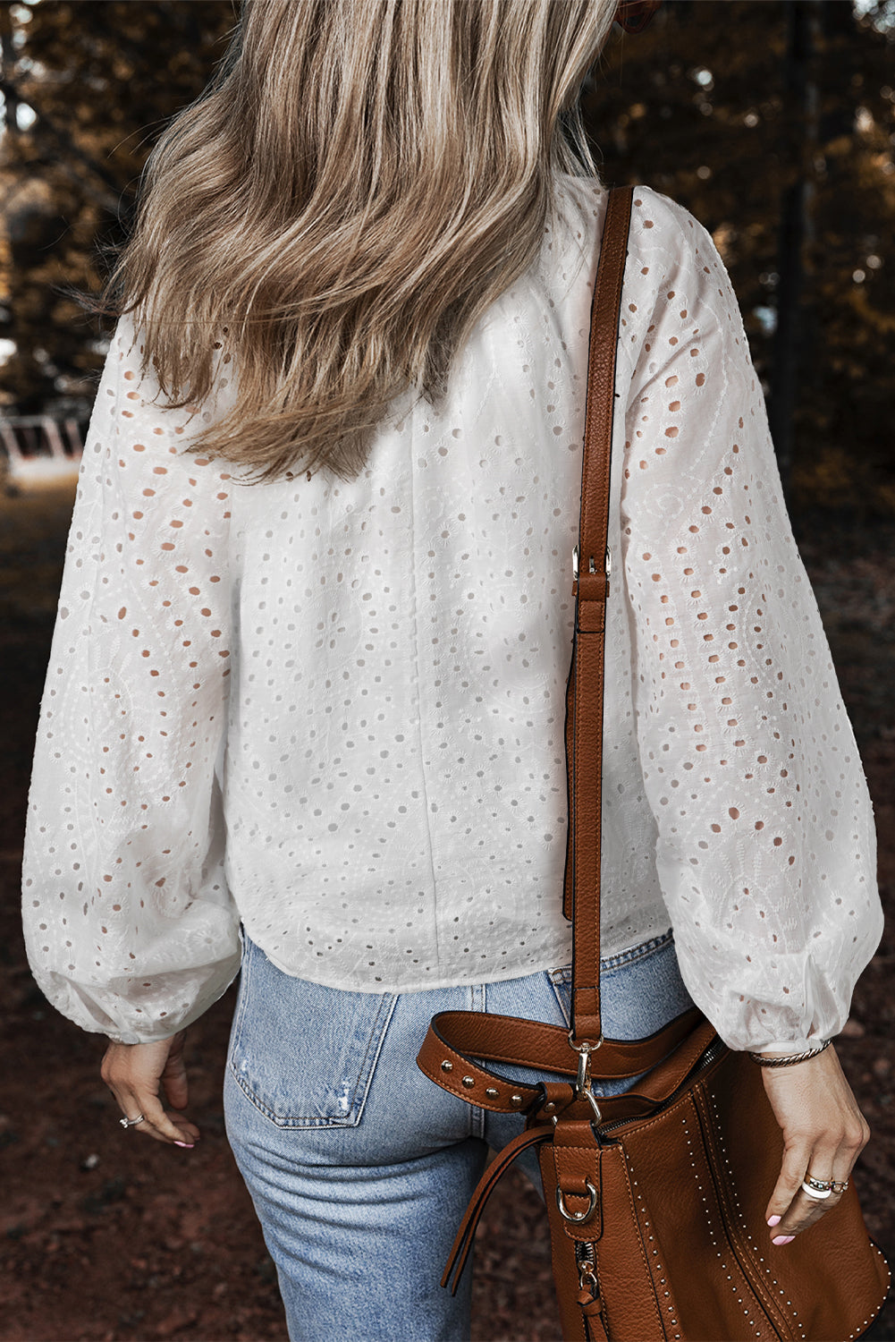White Eyelet Embroidered V Neck Puff Sleeve Blouse