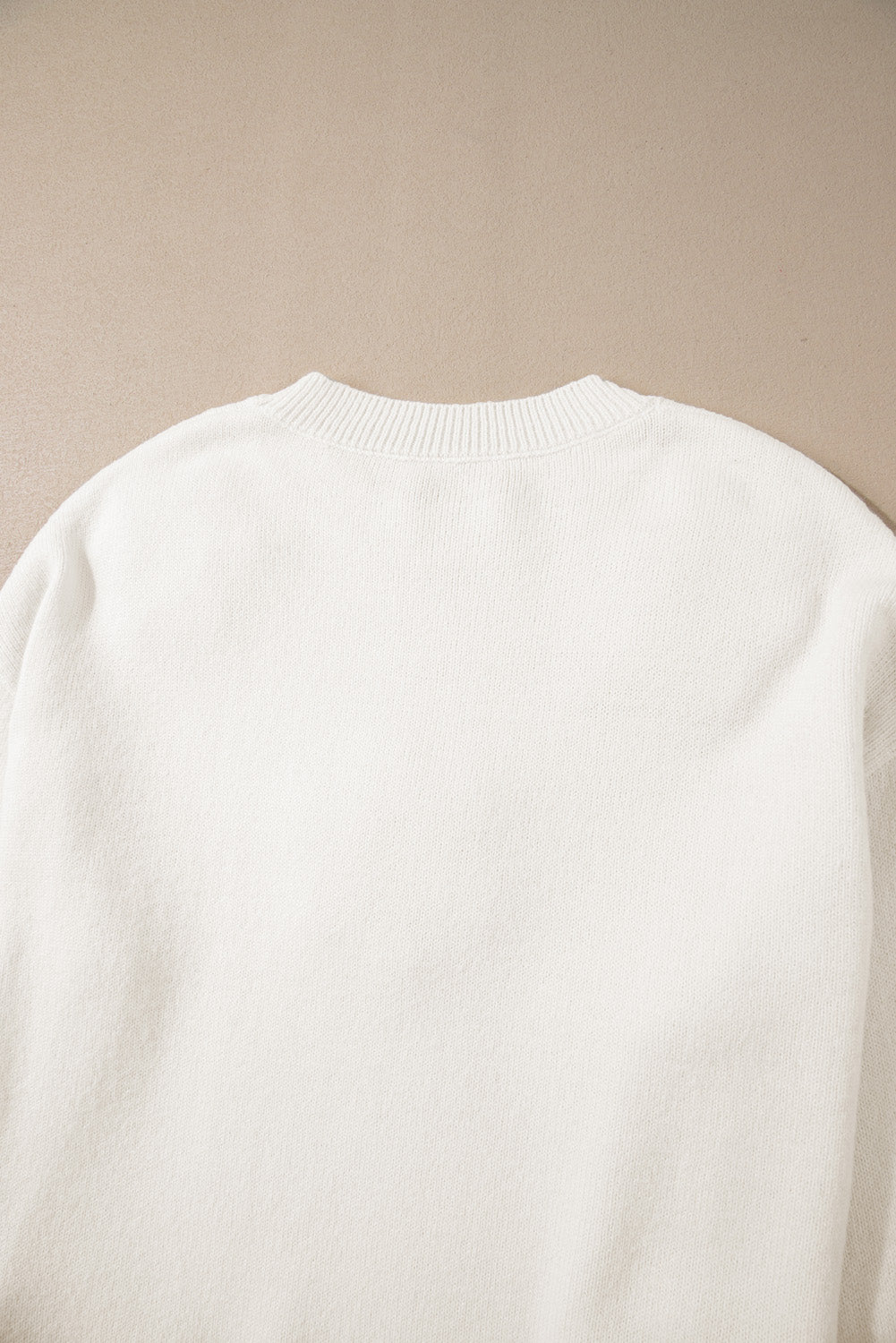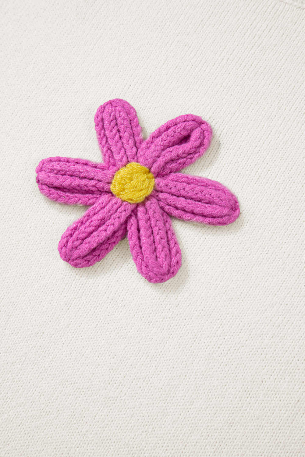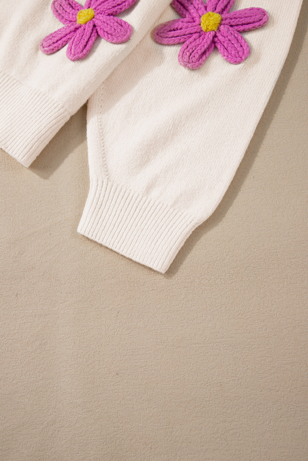 White Plus Size Flower Crochet Drop Shoulder Knit Sweater