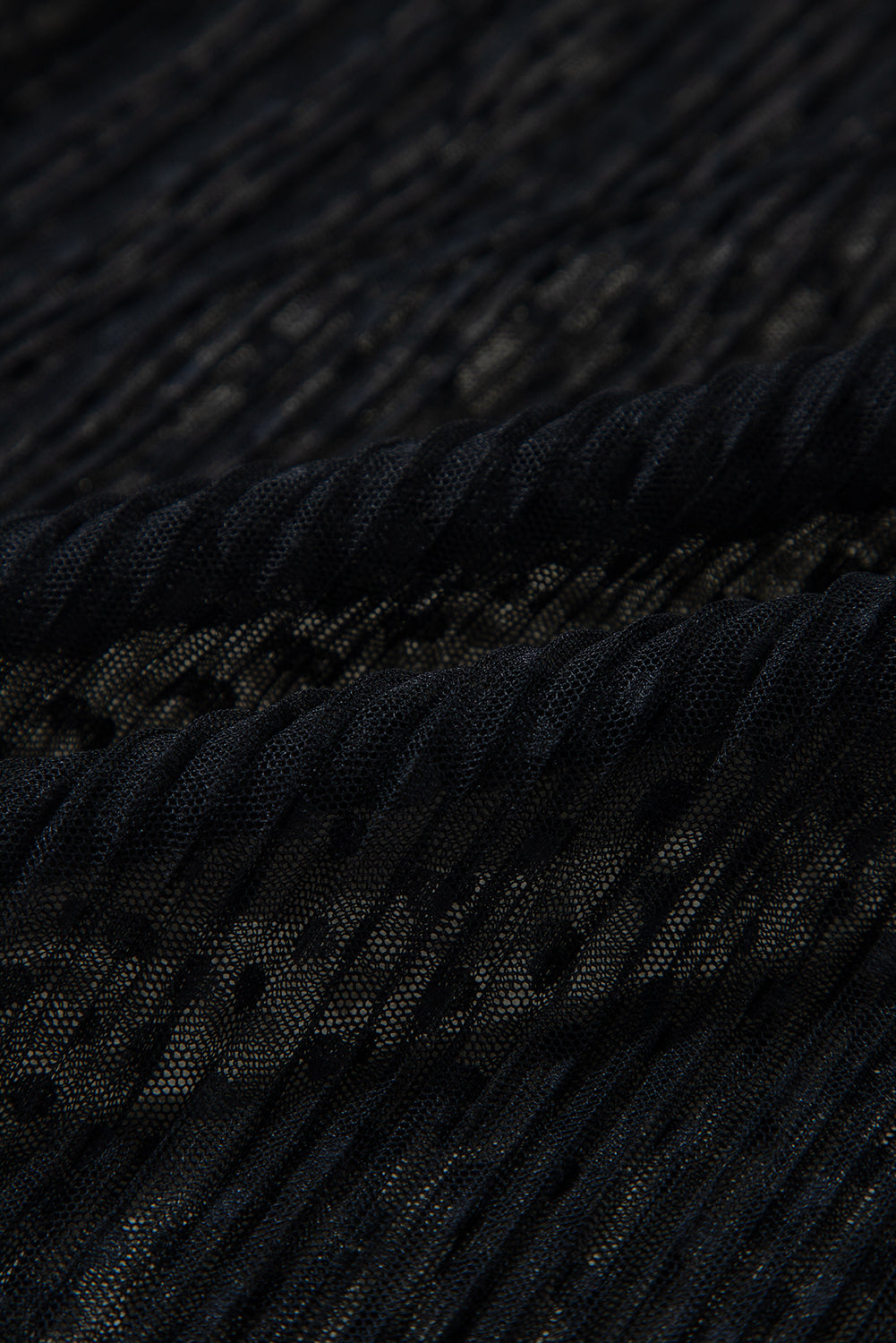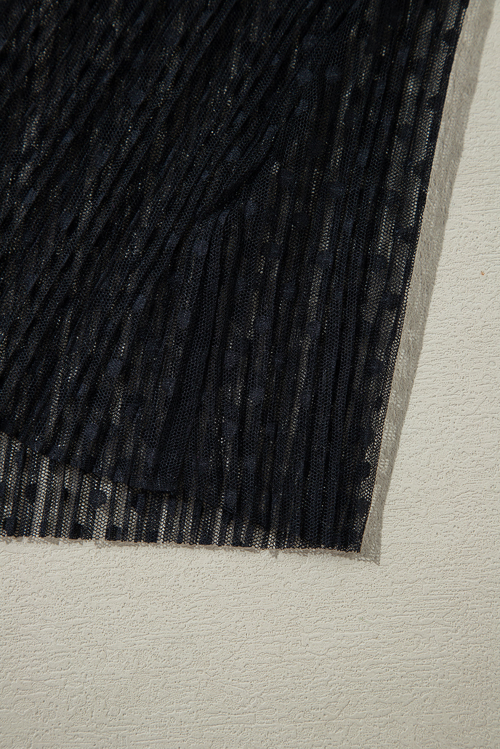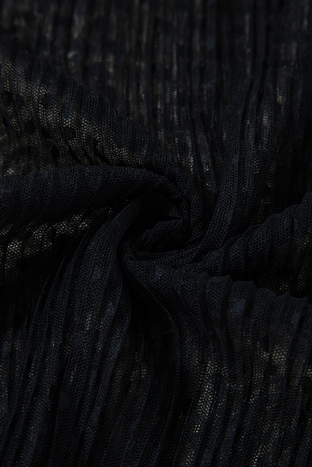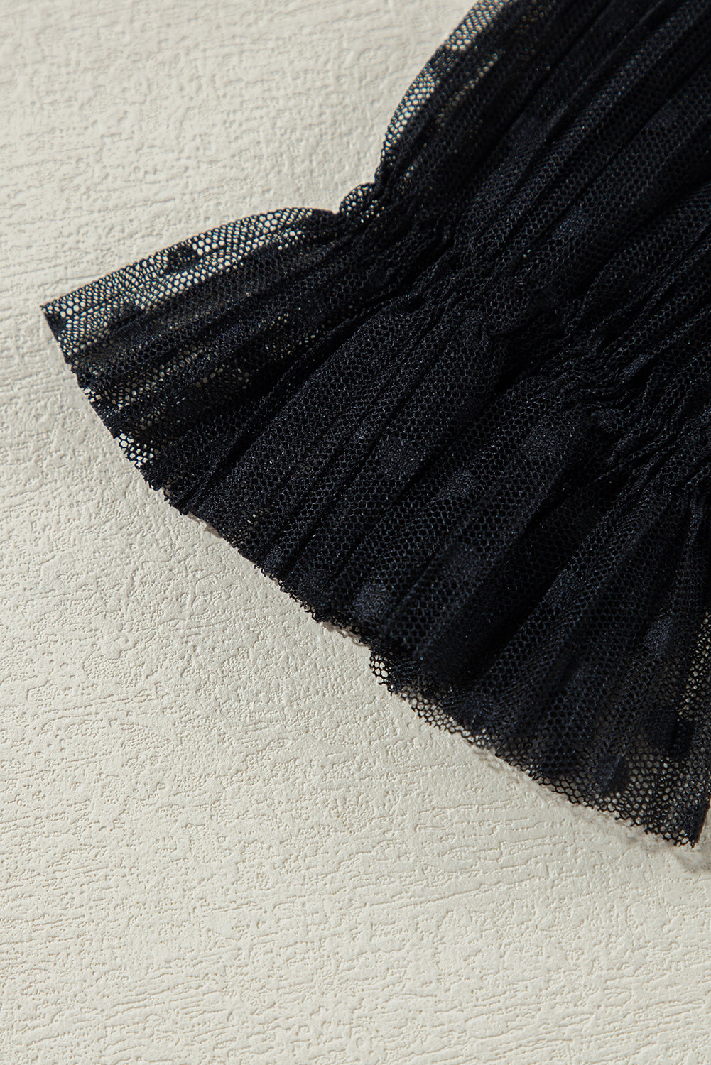 Black Dotty Lace Sheer Mock Neck Long Sleeve Blouse