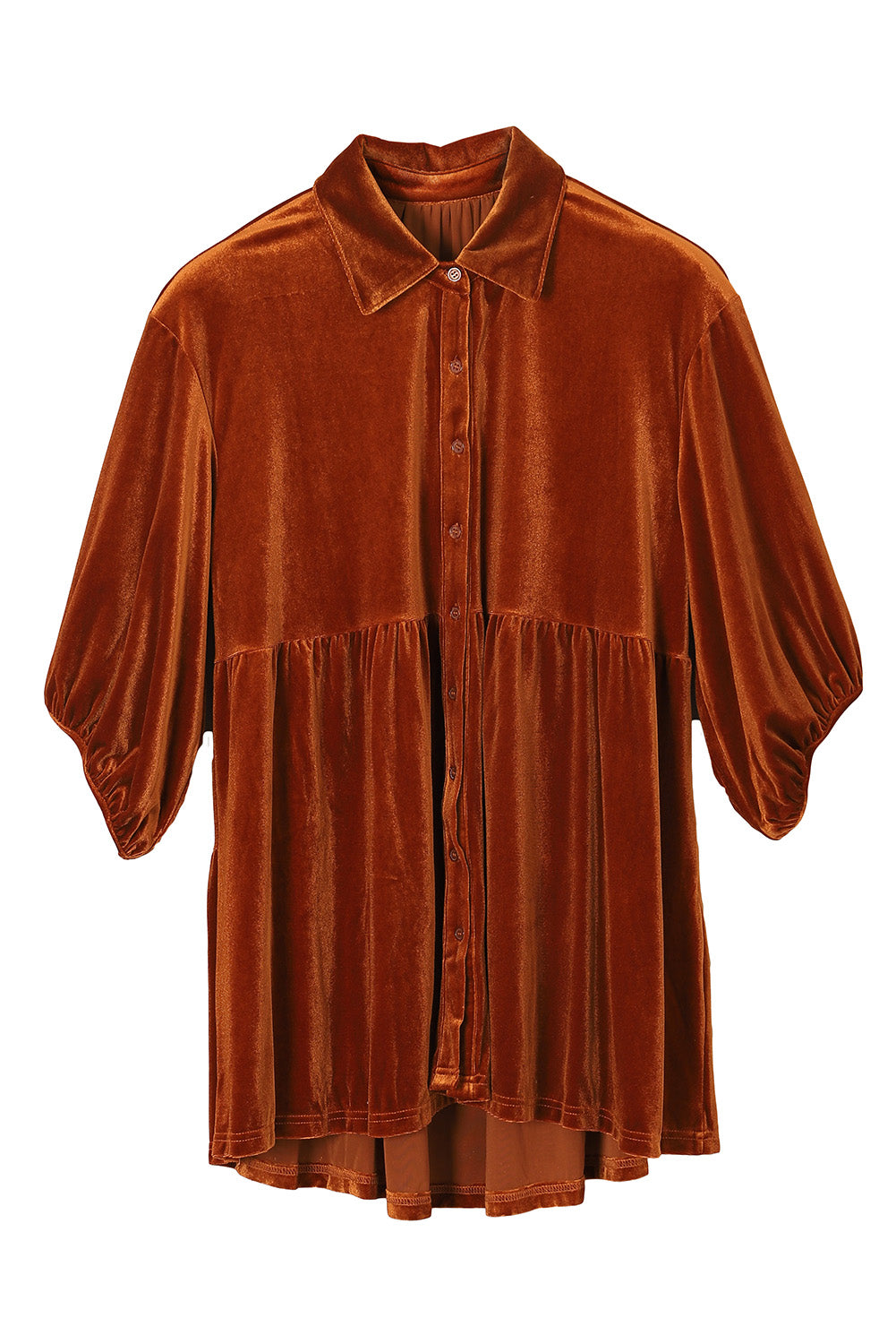 Chestnut 3/4 Sleeve Tunic Babydoll Velvet Shirt