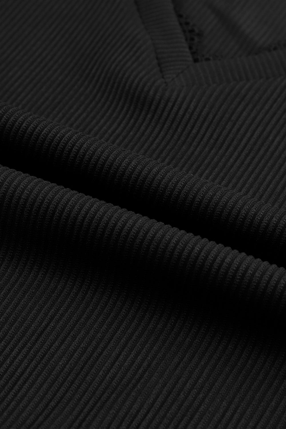 Black Ribbed Texture Lace Trim V Neck Long Sleeve Top
