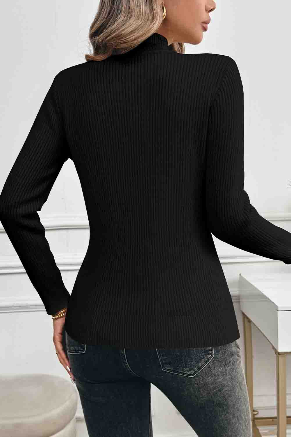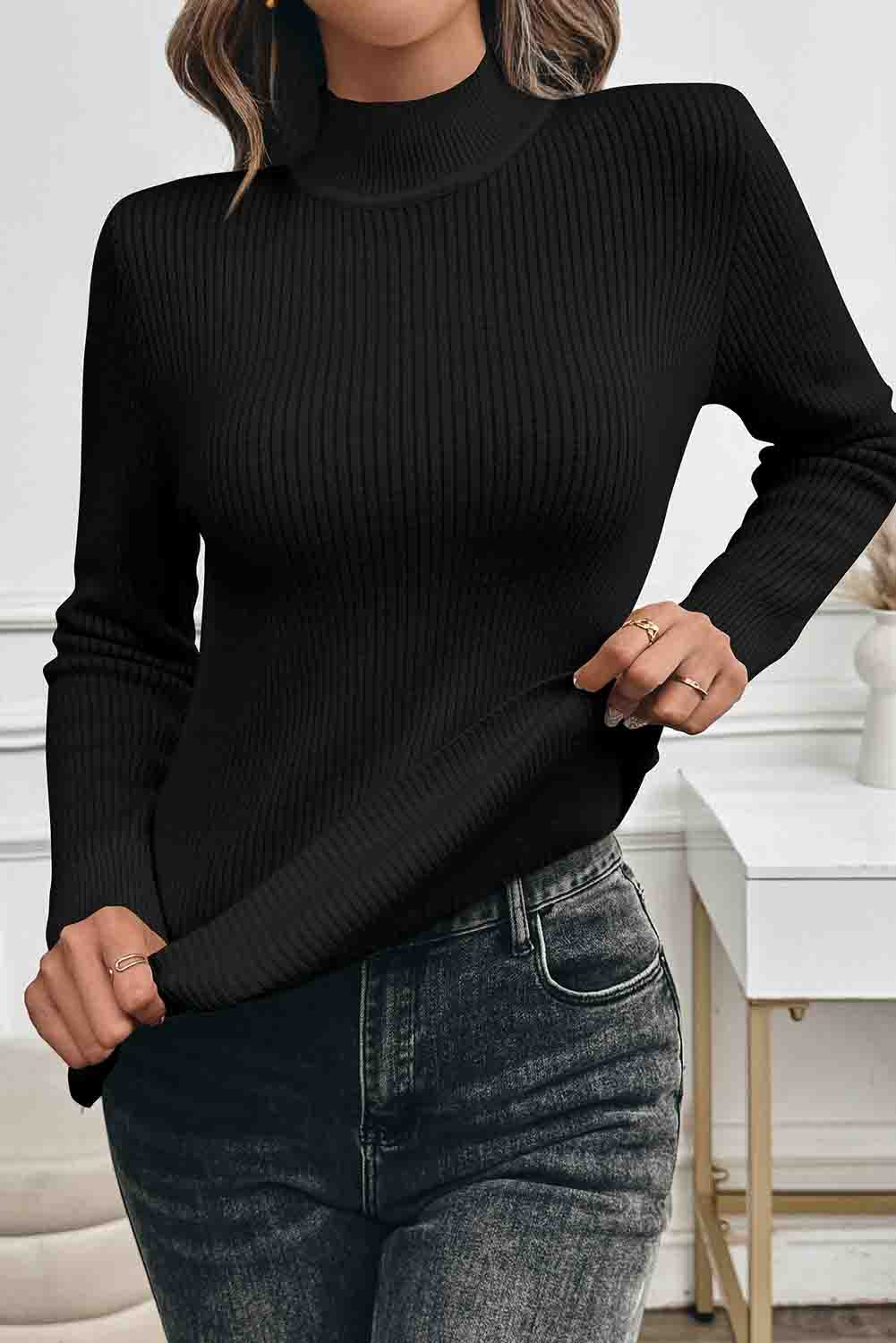 Black Solid Color Fleece Lined High Neck Slim Fit Sweater