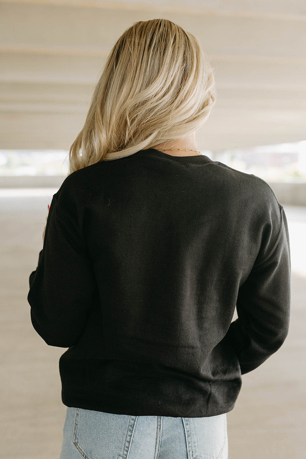 Black Embroidered Howdy Cow Western Graphic Crew Neck Sweatshirt