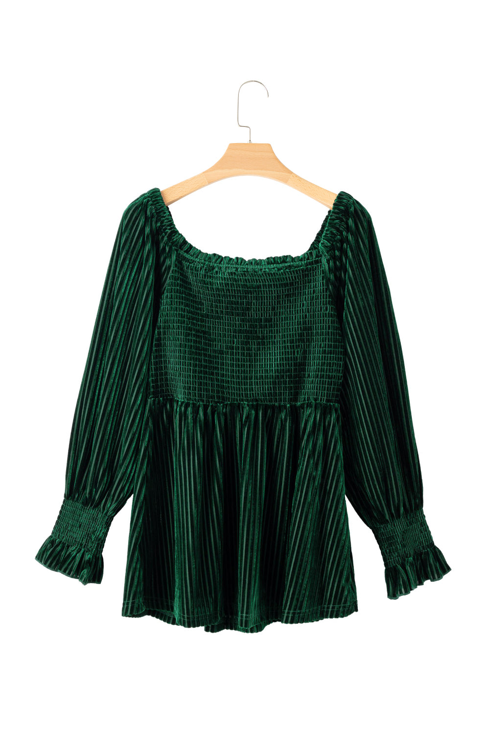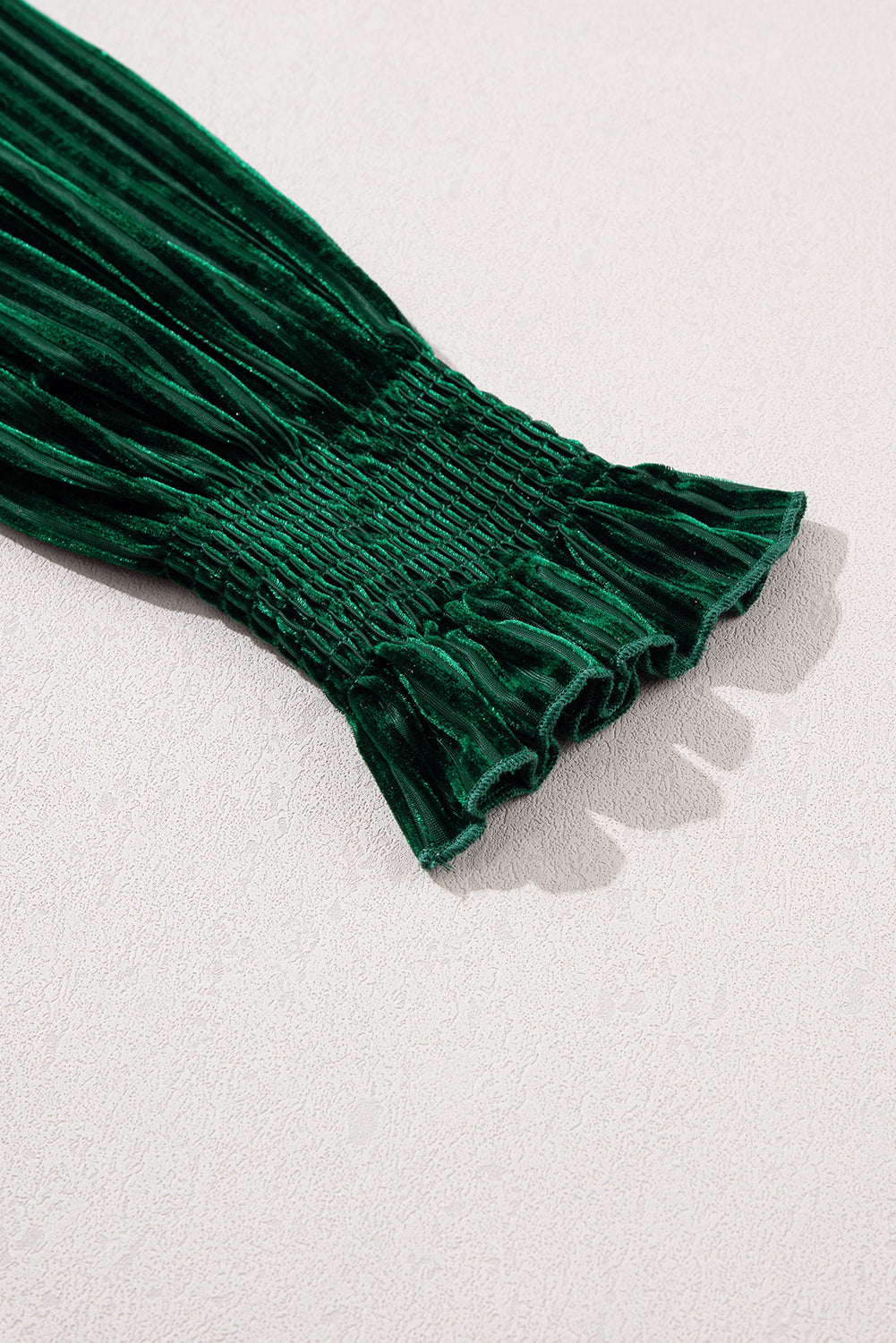 Blackish Green Smocked Ribbed Velvet Babydoll Top