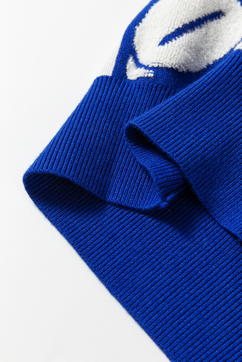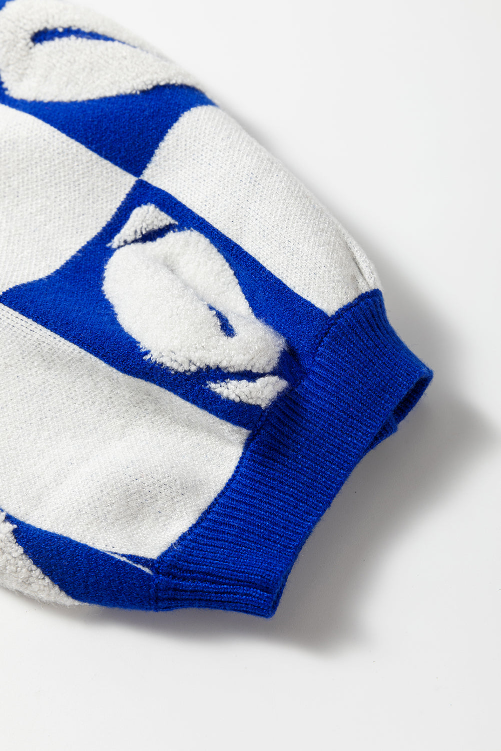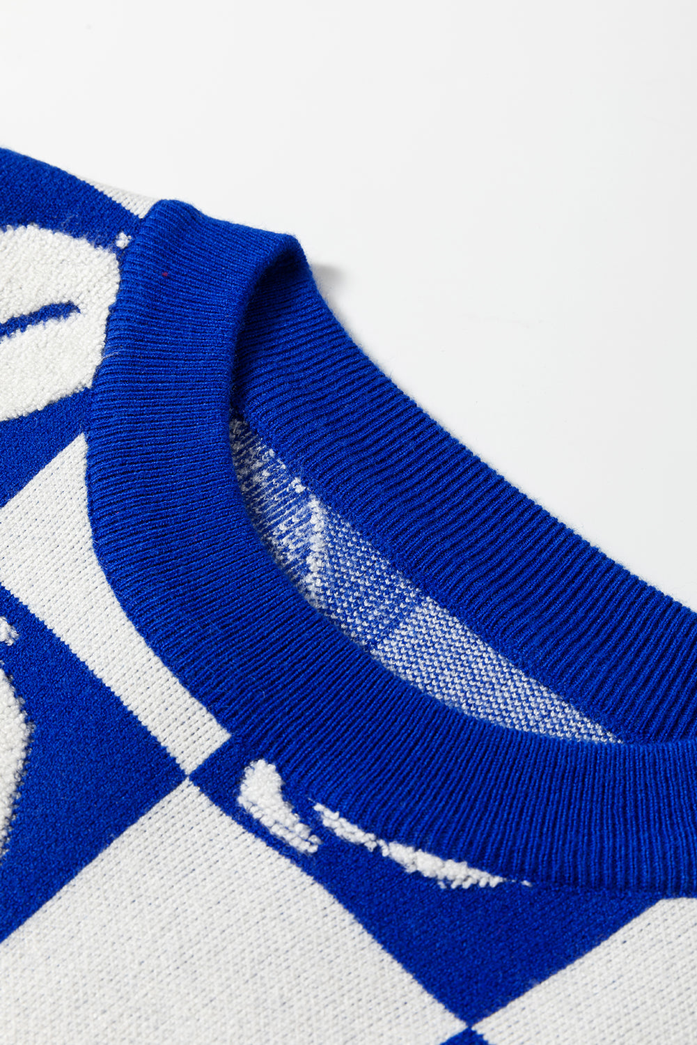 Dark Blue Rugby Plaid Color Block Puff Short Sleeve Sweater