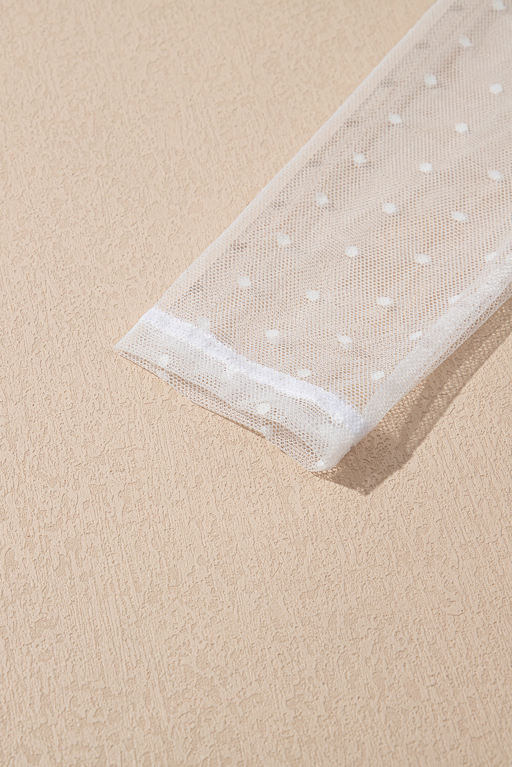 White Swiss Dot Mesh Long Sleeve Square Neck Slim Top