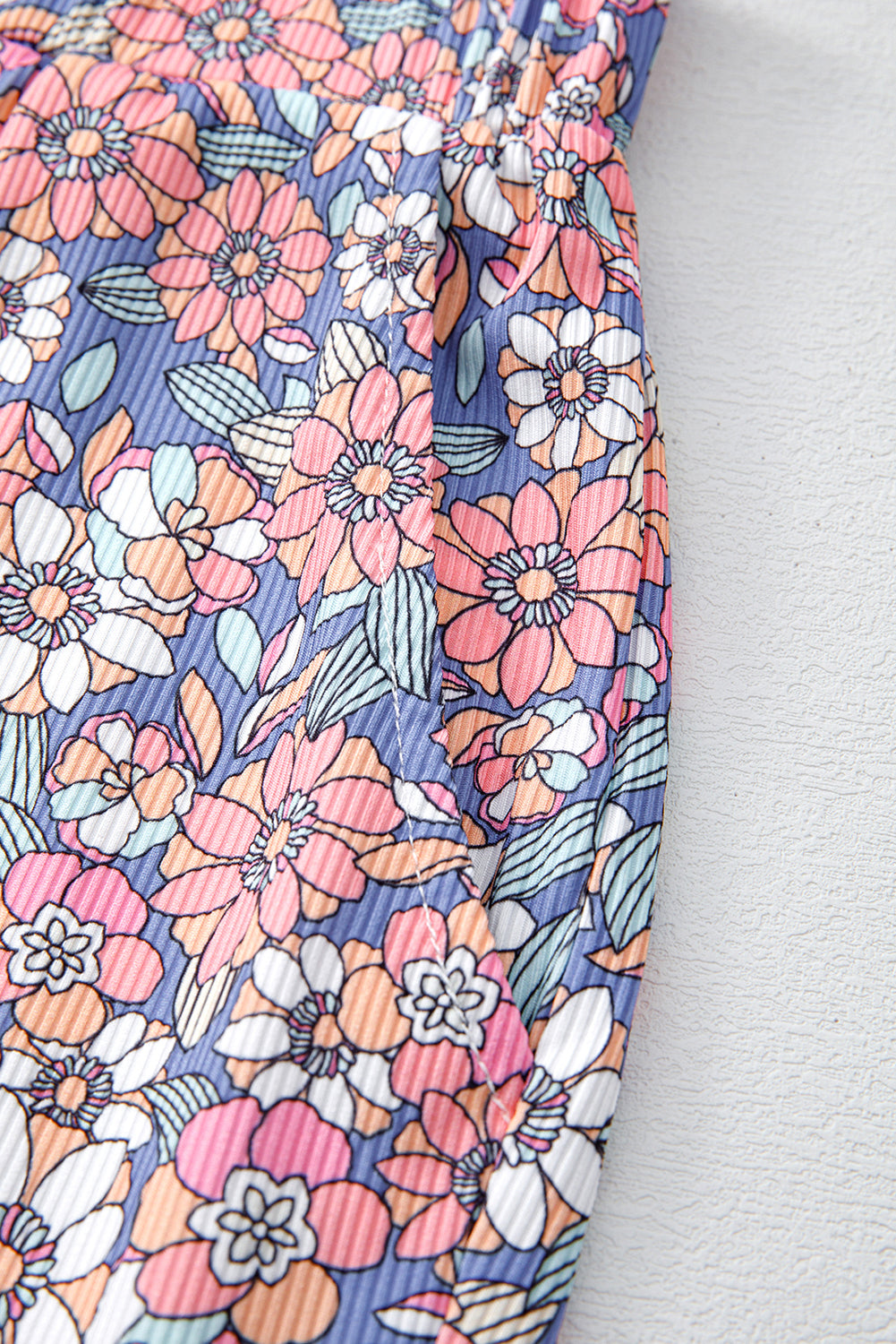 Sky Blue Floral Print Spaghetti Straps Tank Top and Shorts Set