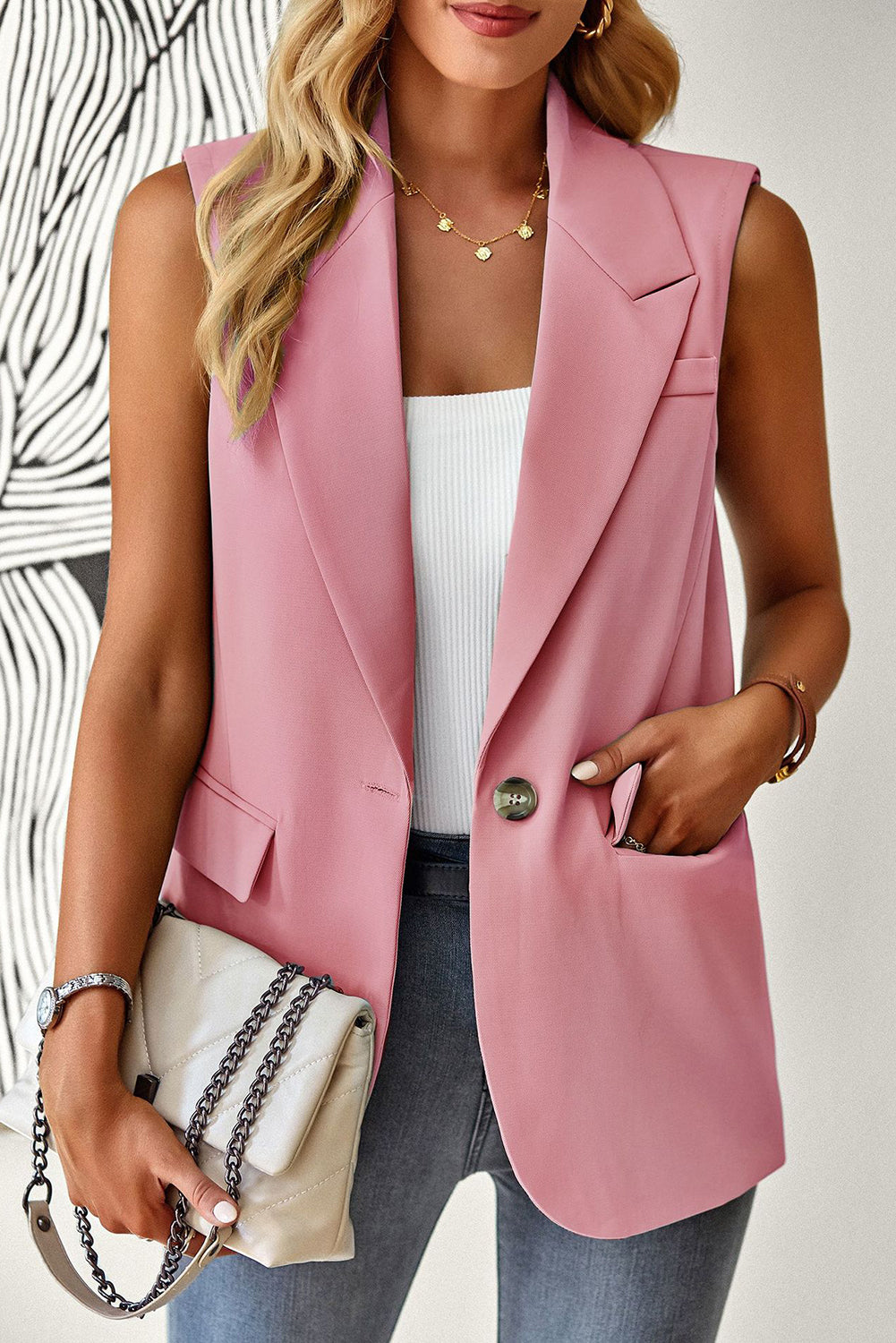Pink Lapel Collar Suit Style Button Pocketed Vest