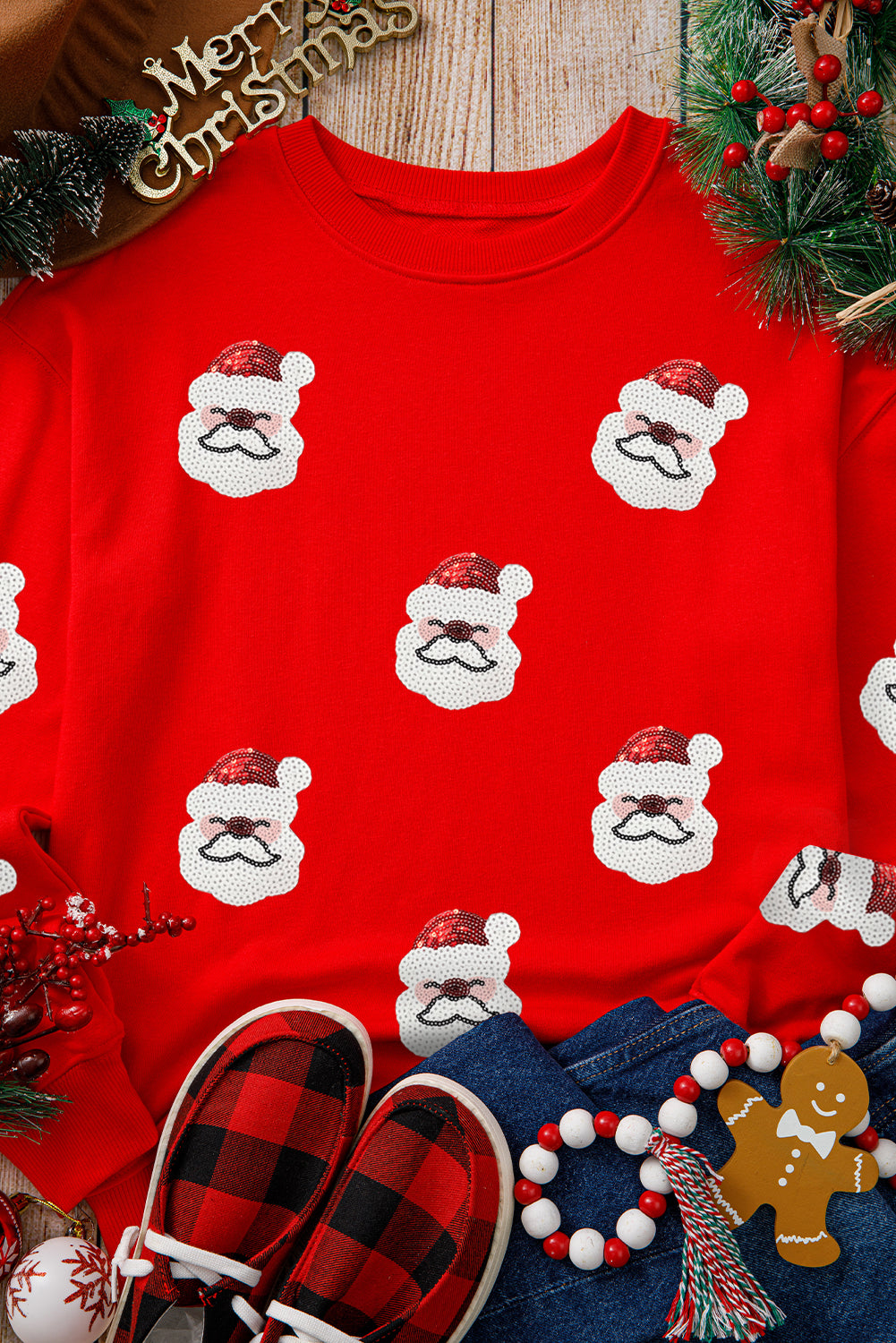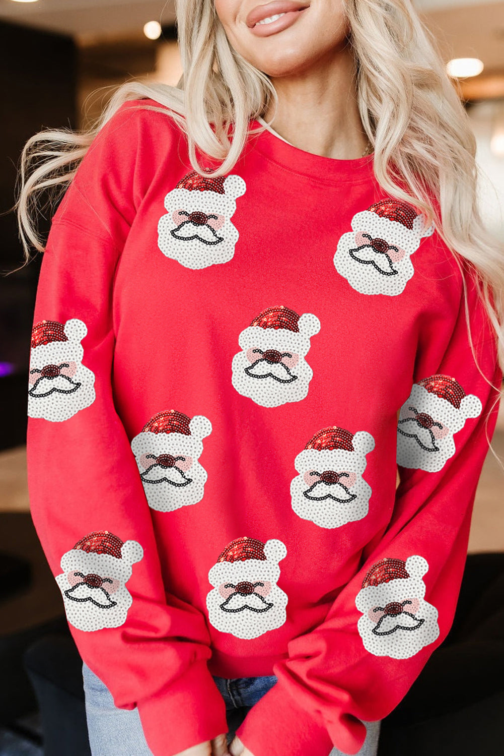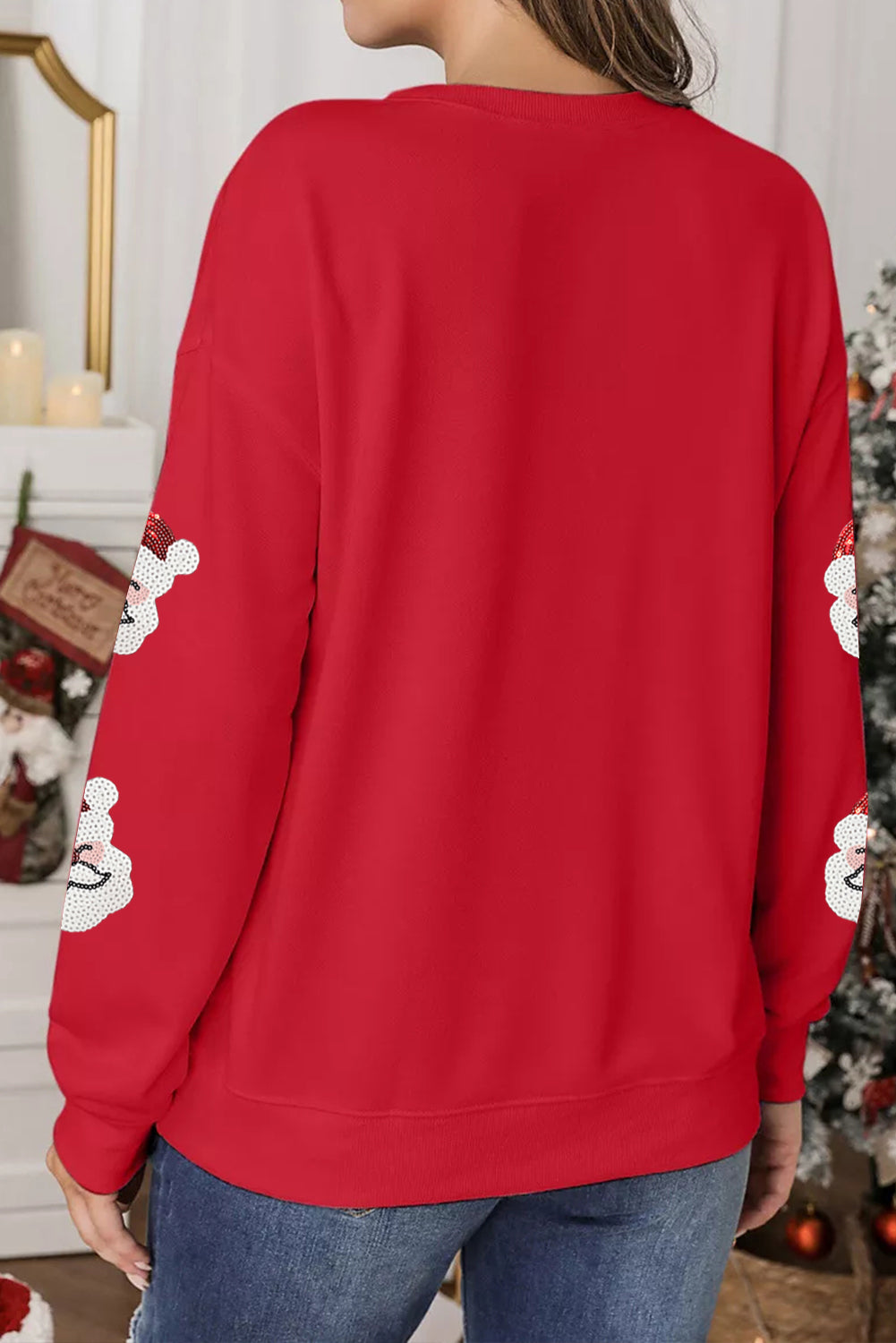 Red Sequin Santa Clause Patched Christmas Pullover Sweatshirt