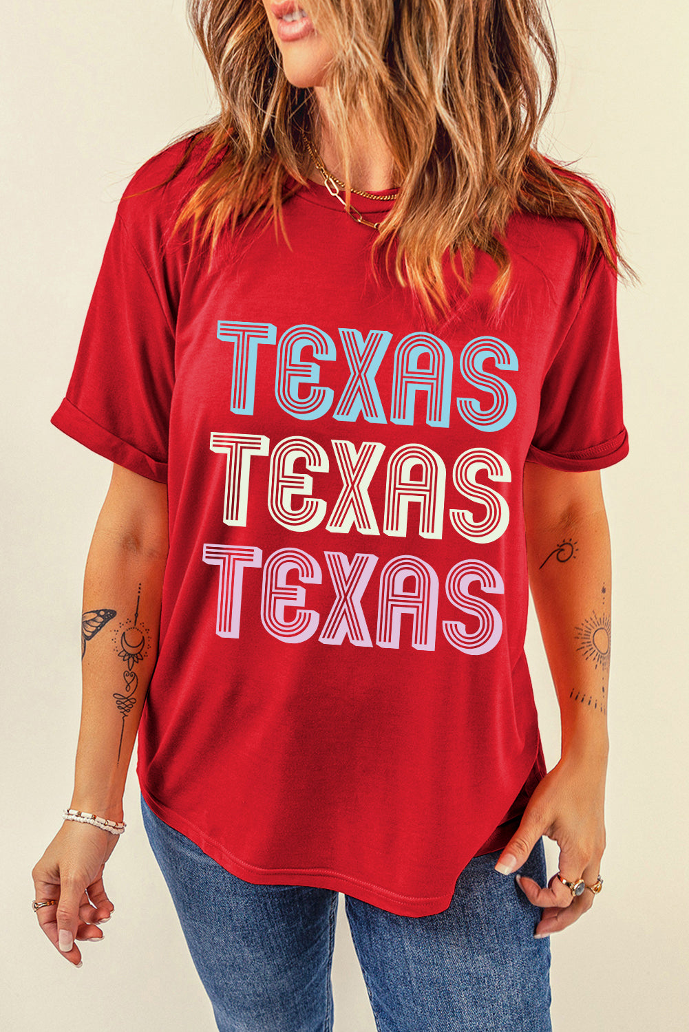Red TEXAS Letter Graphic Casual T Shirt