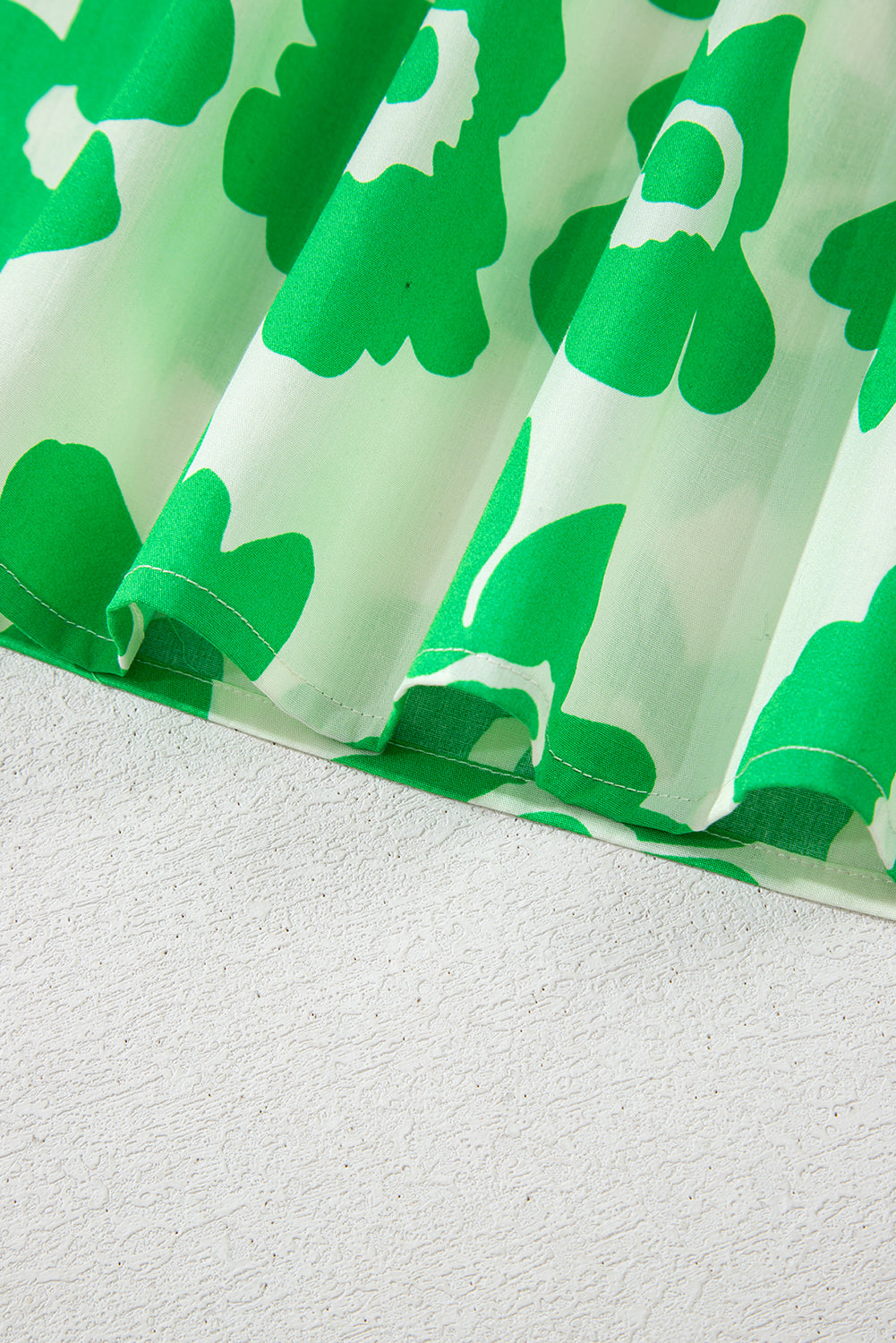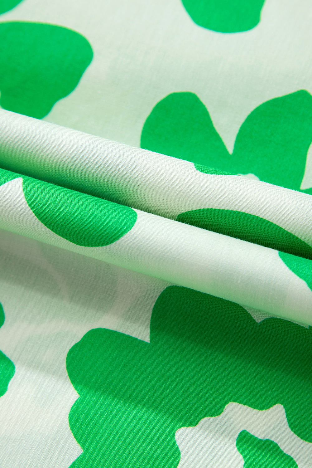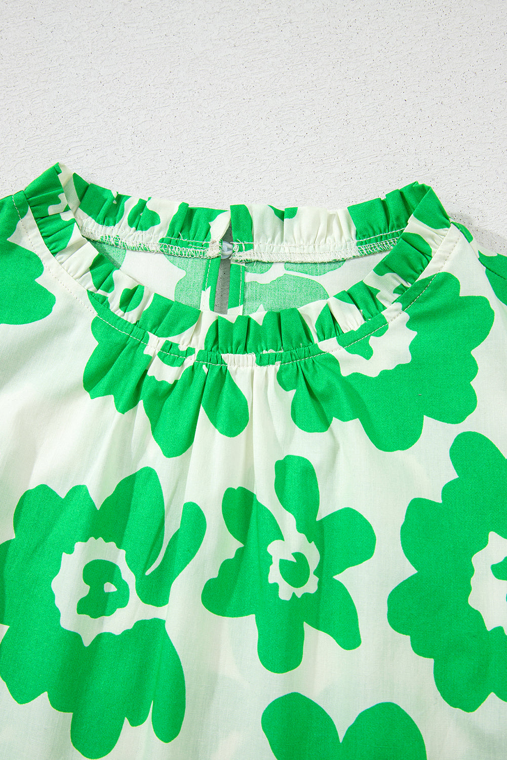 Green Contrast Embroidered Puff Short Sleeve Floral Blouse