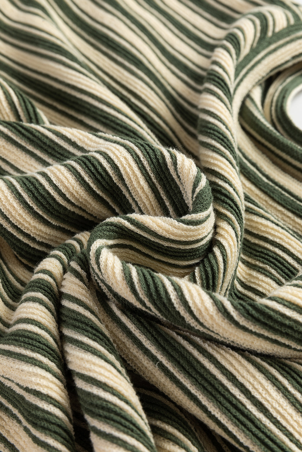 Green Stripe Textured Side Slits Crew Neck T Shirt