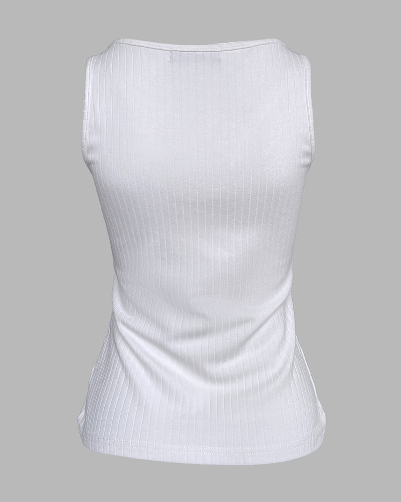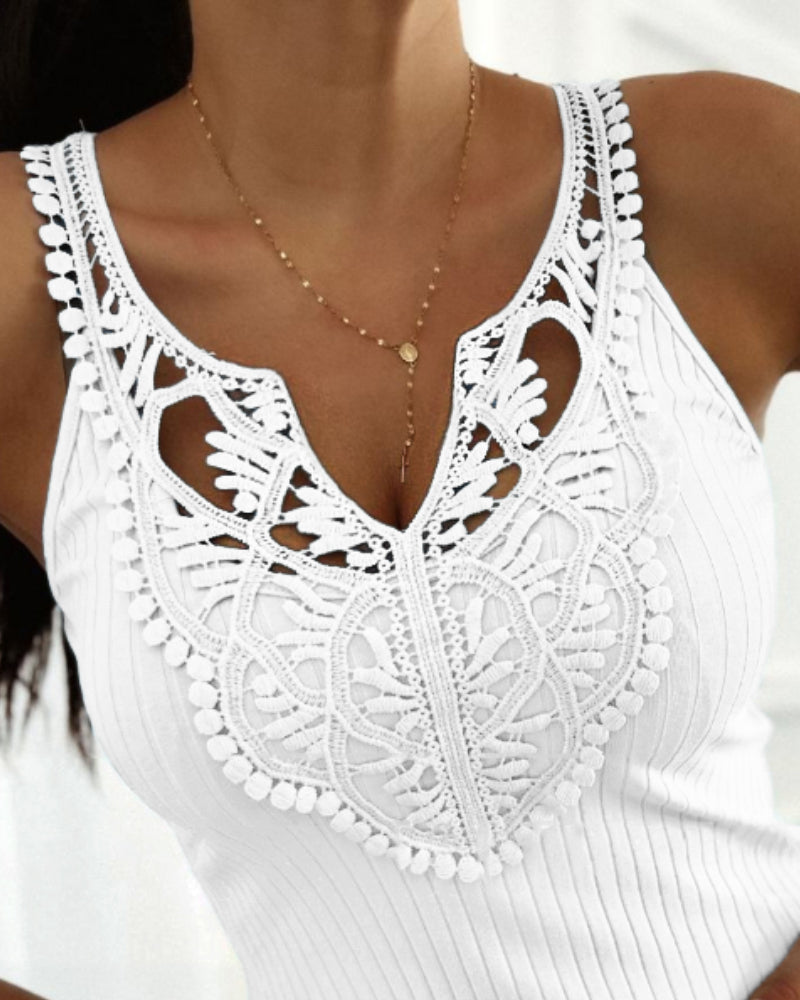 Contrast Lace V Neck Sleeveless Knit Top Casual Slim Fit Tank
