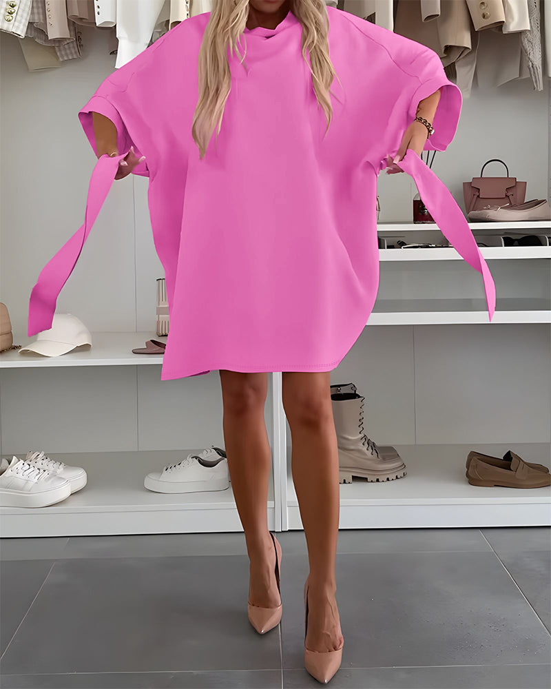 Cowl Neck Batwing Sleeve Bow Tie Waist Casual Mini Dress A Line Dress
