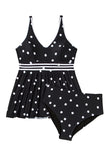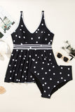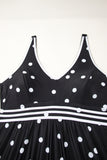 Black Polka Dot/Colorblock Trim V Neck Plus Size Swim Dress