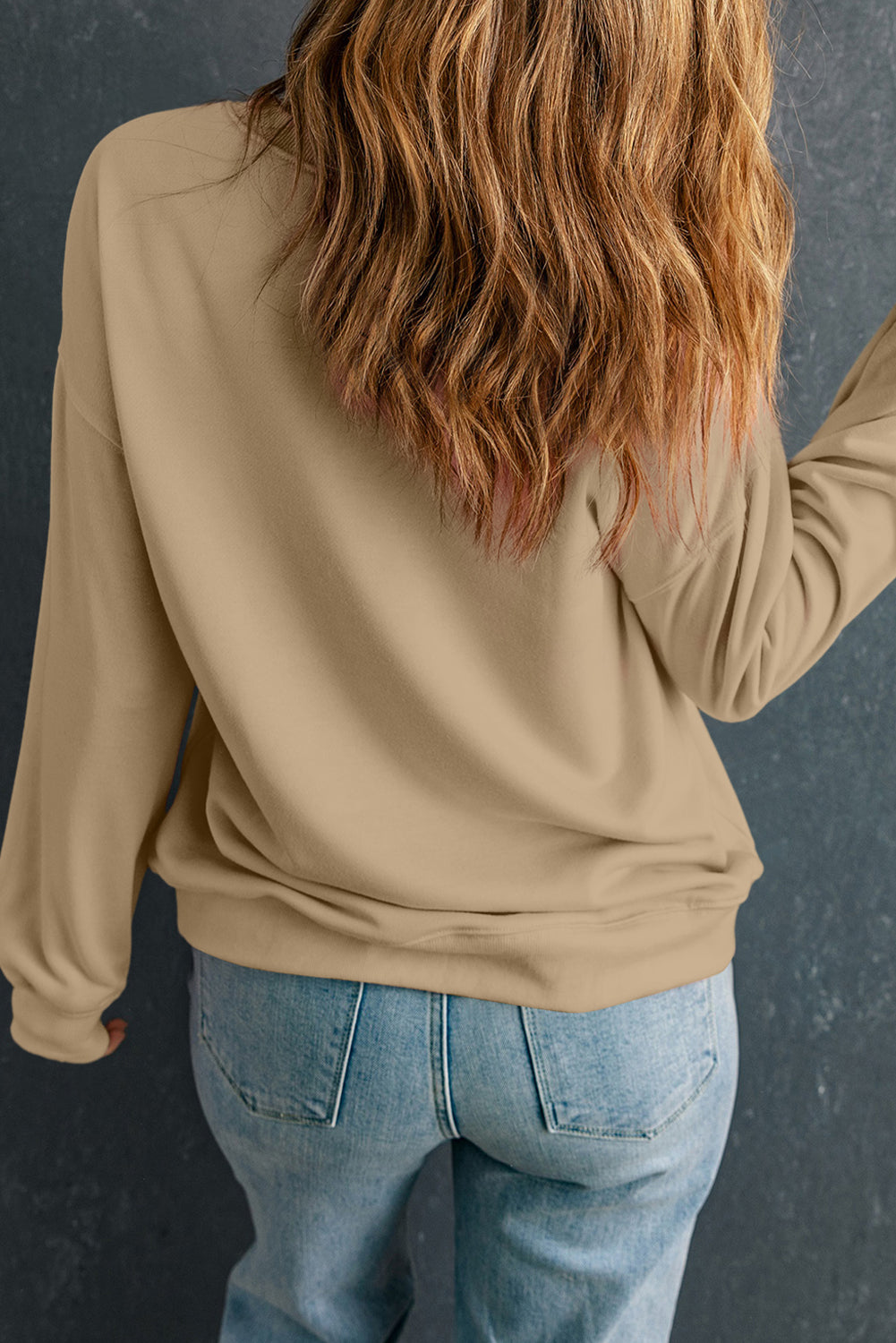 Apricot Turkey Time Thanksgiving Sequin Patch Graphic Plus Size Sweatshirt