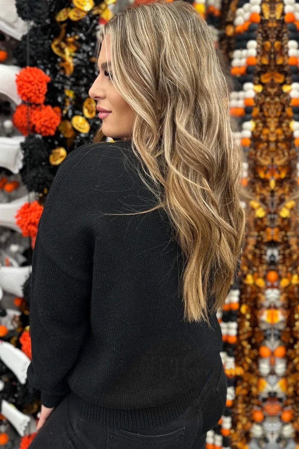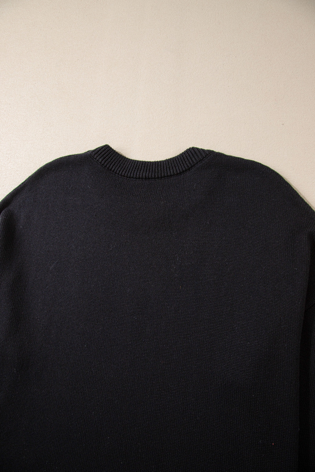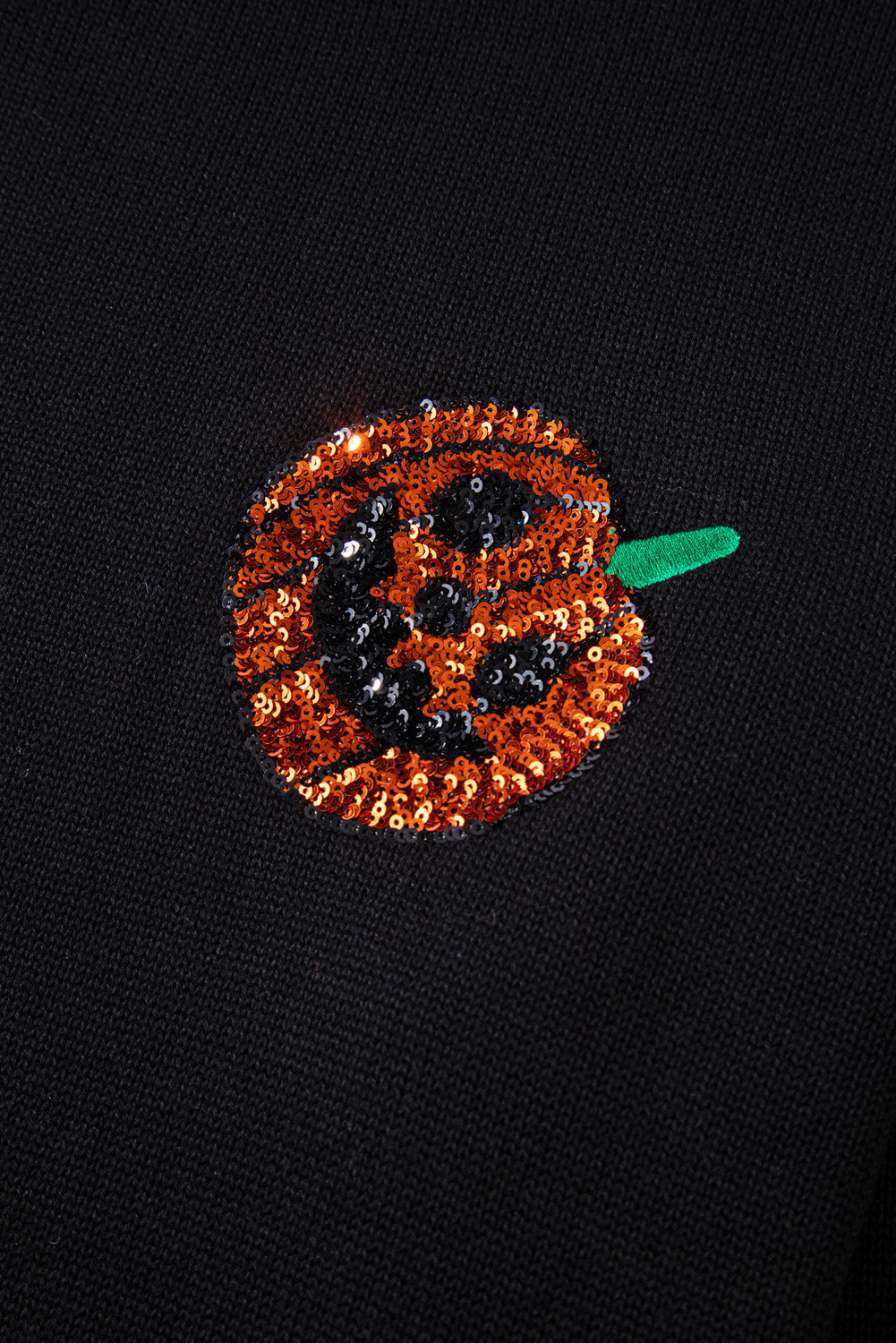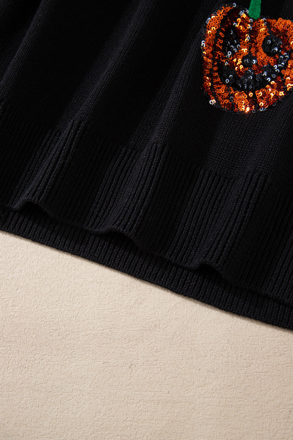 Black Plus Size Halloween Sequined Pumpkin Pattern Sweater
