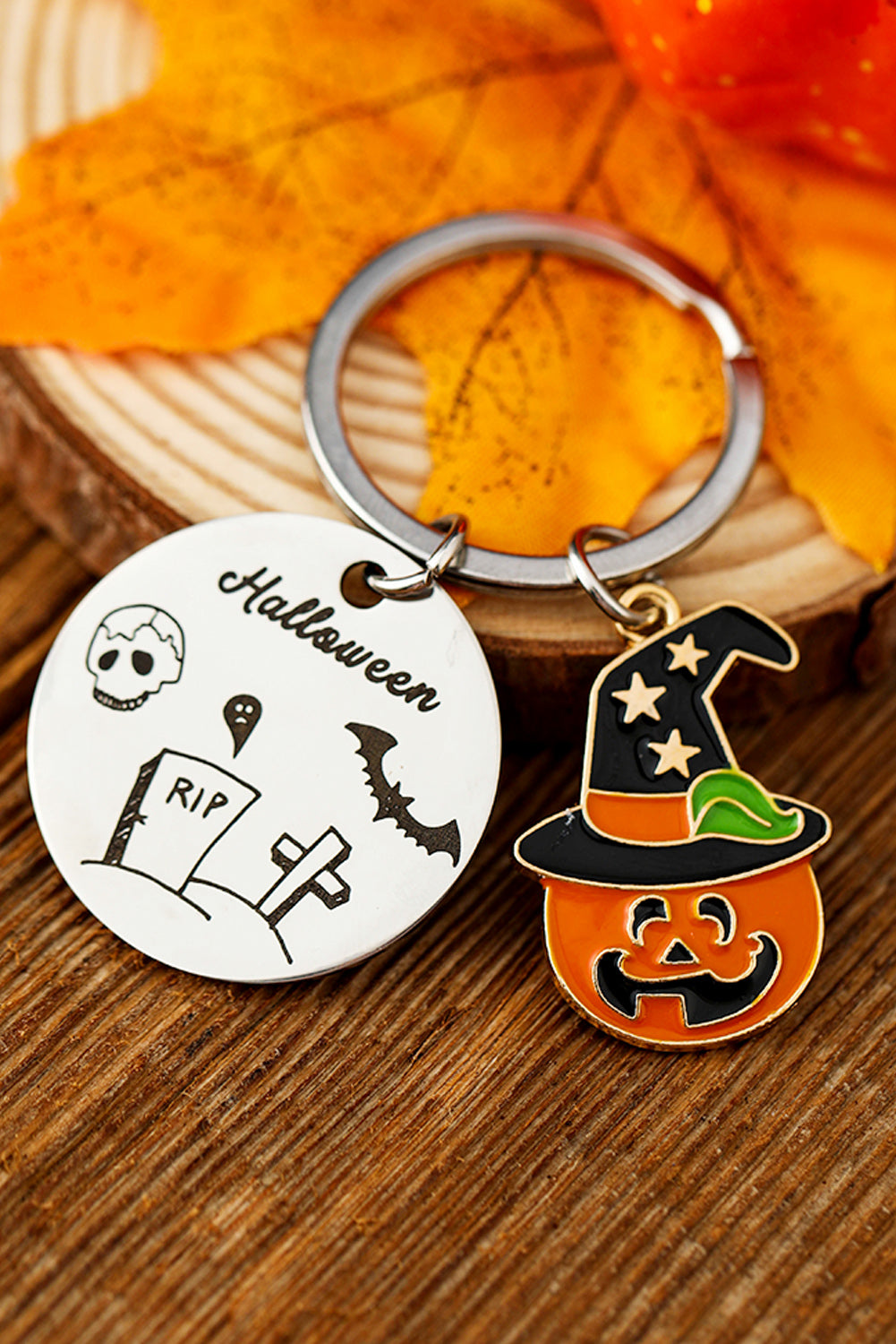 Orange Halloween Witch Skull Stainless Steel Keychain