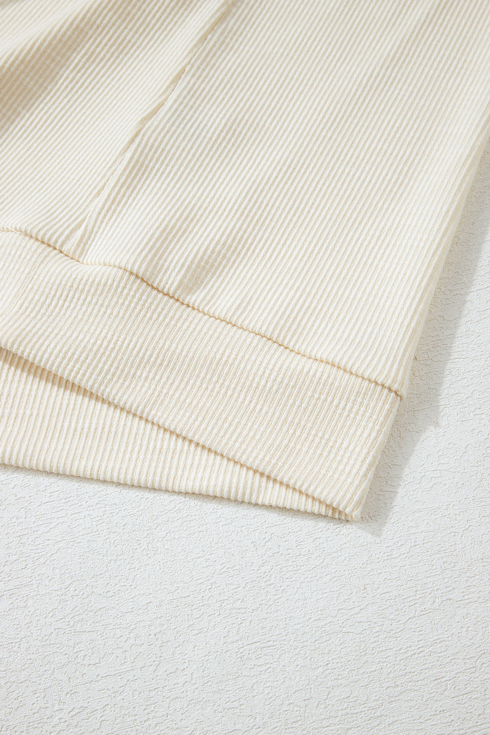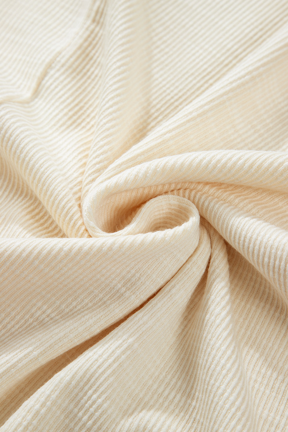 Apricot Plus Size Floral Patchwork Ribbed Puff Sleeve Top