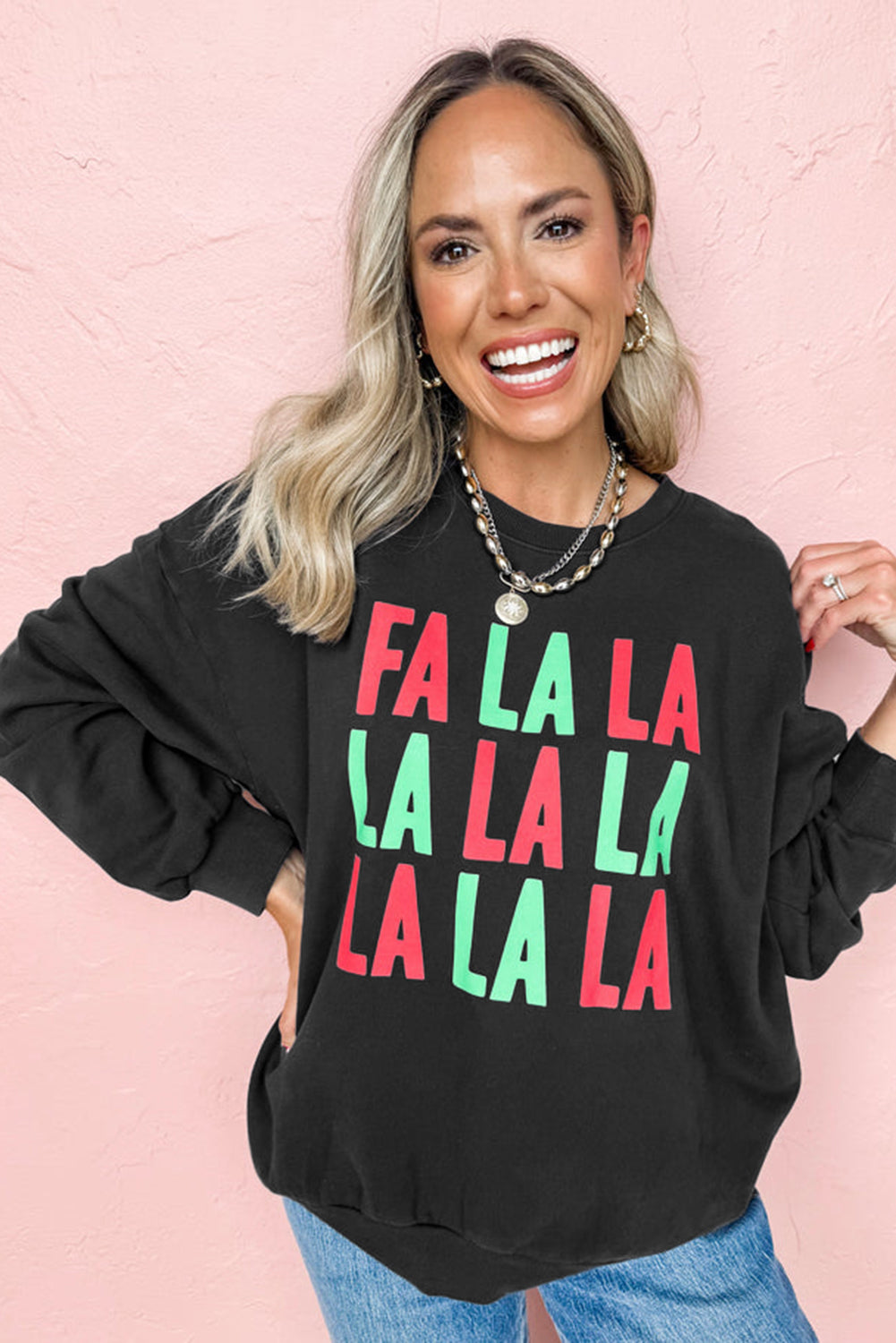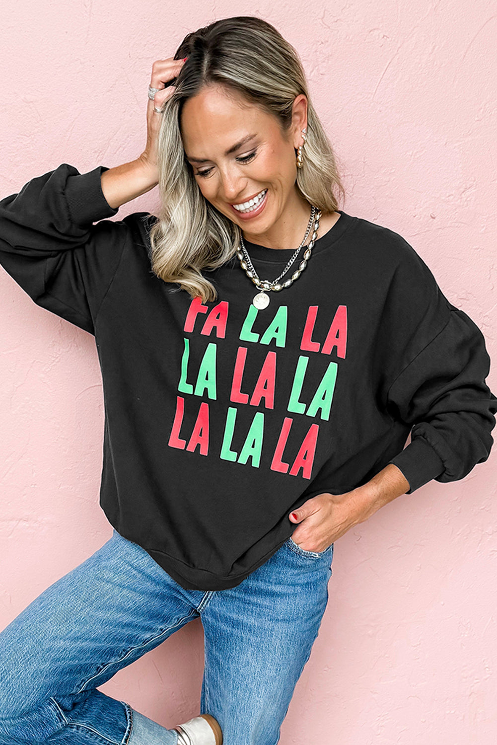 Black FA LA LA Christmas Letter Graphic Sweatshirt