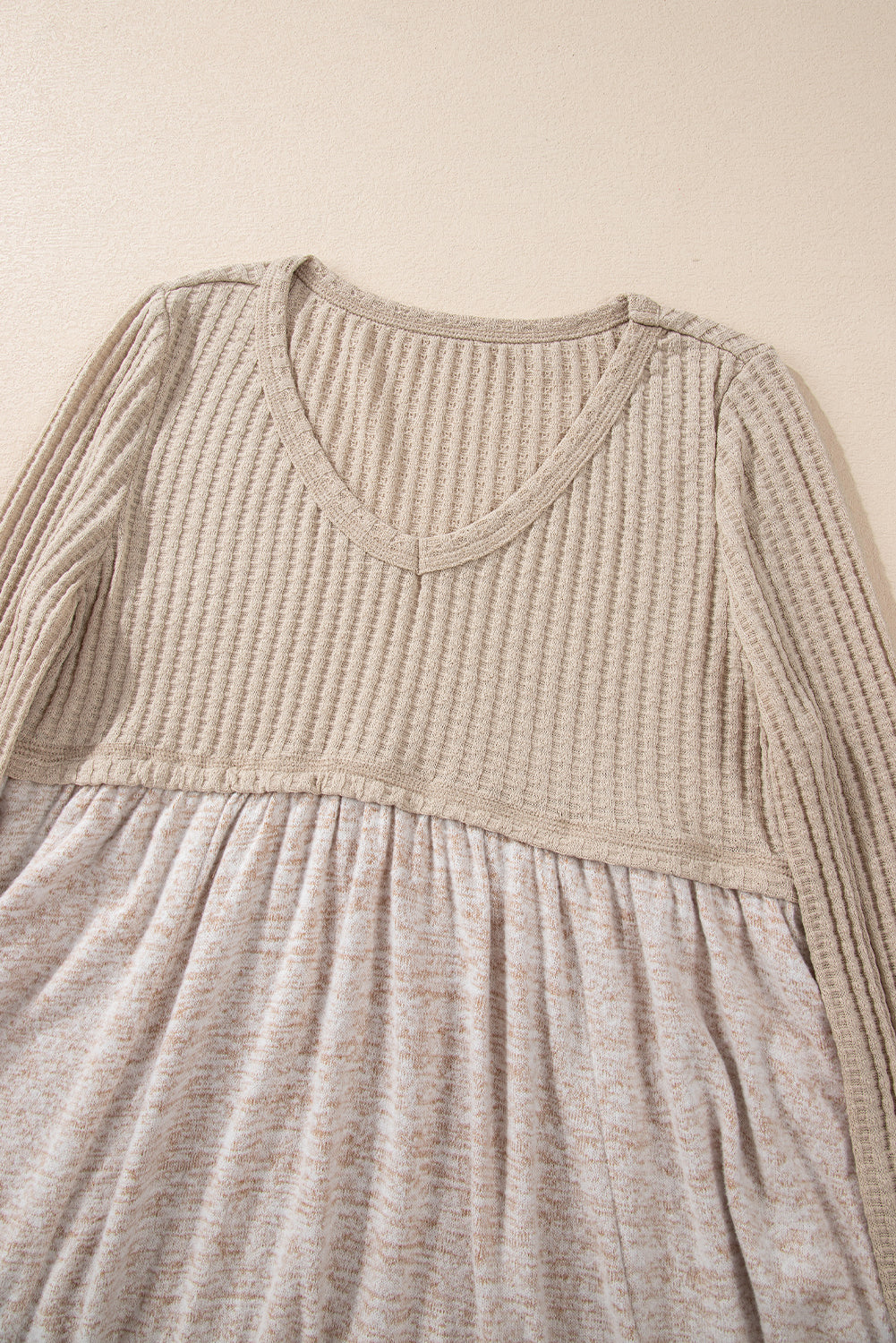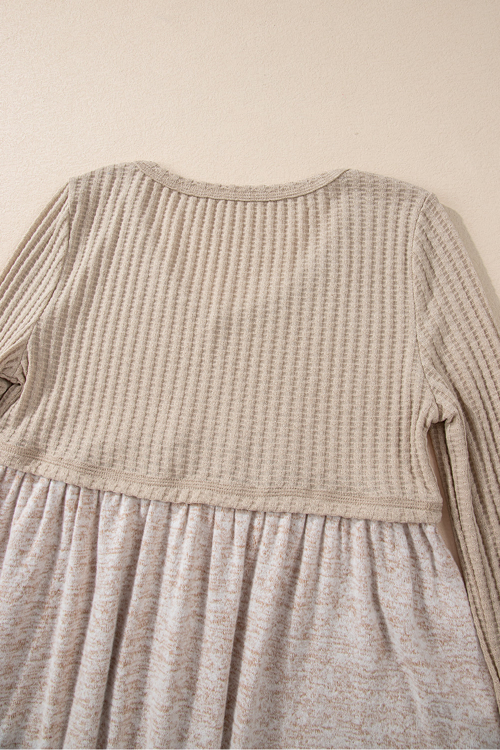 Smoke Gray Textured Long Sleeve V Neck Babydoll Top
