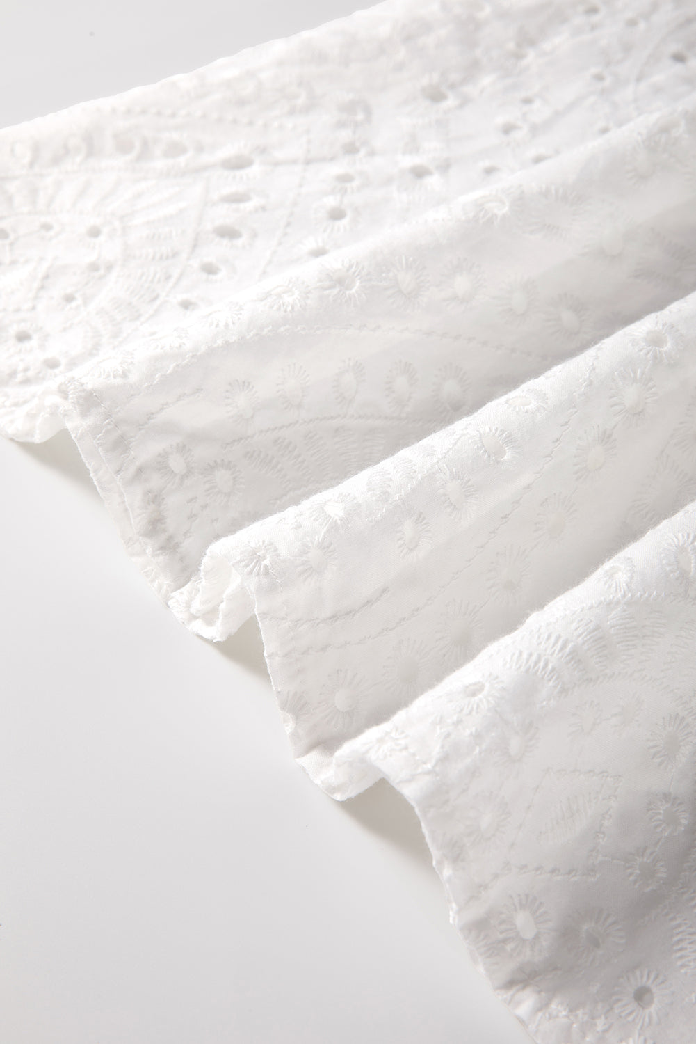 White Eyelet Embroidered Puff Sleeve V Neck Blouse