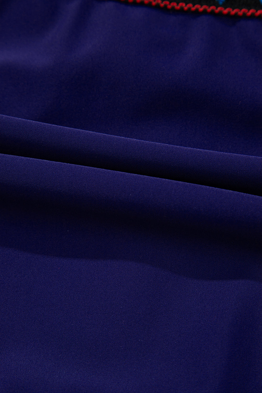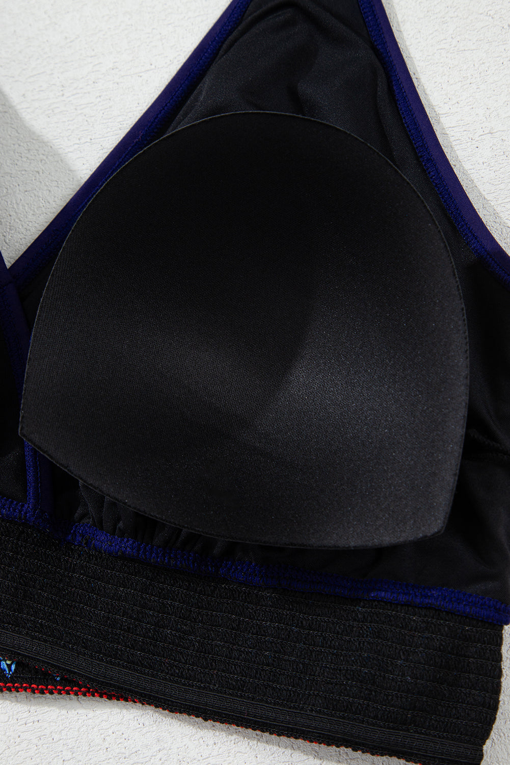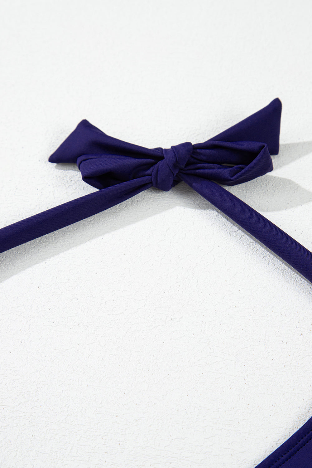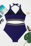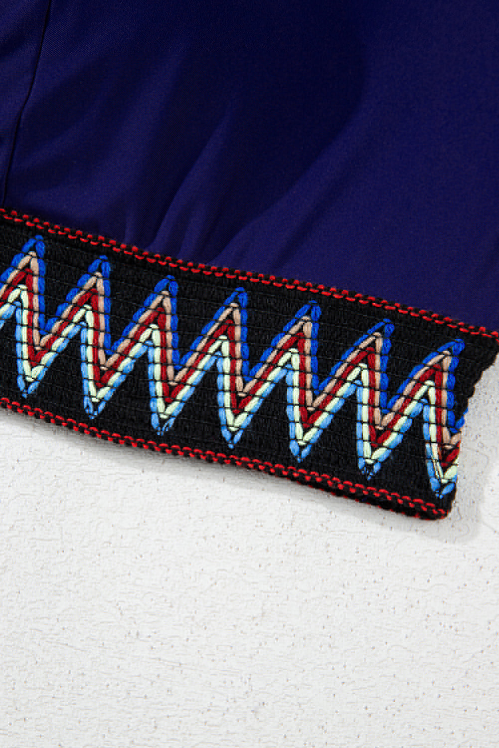 Navy Blue Embroidered Trim Wrap Tie Knot Plus Size High Waisted Bikini