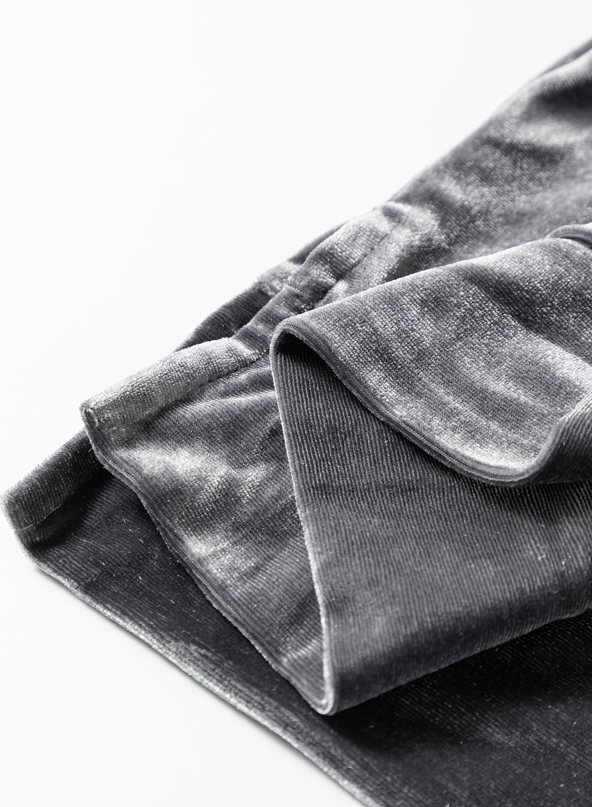 Medium Grey Leopard Splicing Lantern Sleeve Velvet Blouse