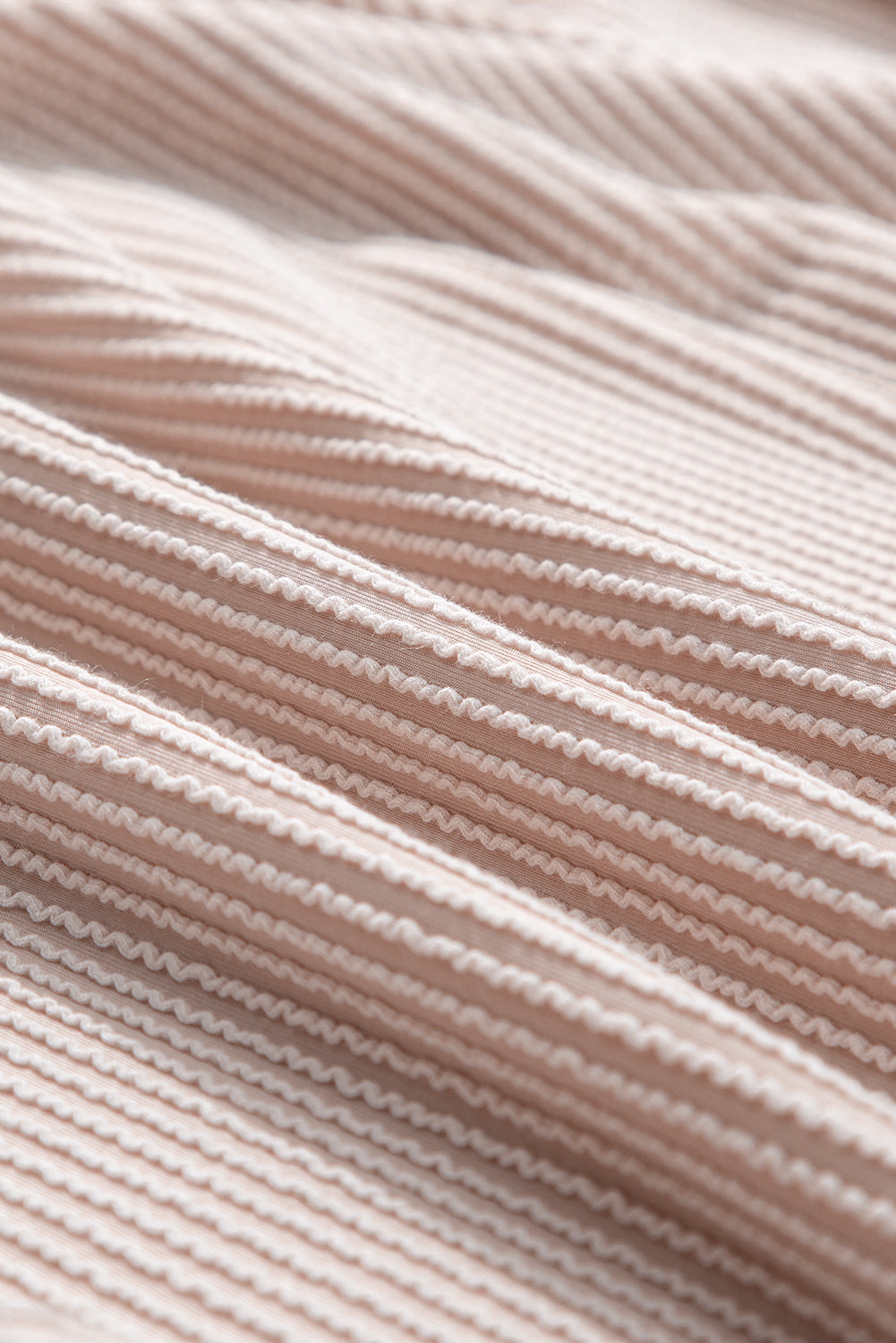 Parchment Corded Colorblock Long Sleeve Slit V Neck Plus Top