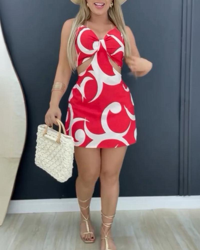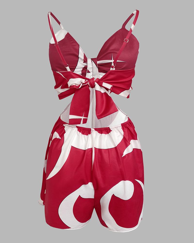 Floral Print Spaghetti Strap Hollow out Romper Casual Slim Fit Dress Jumpsuit