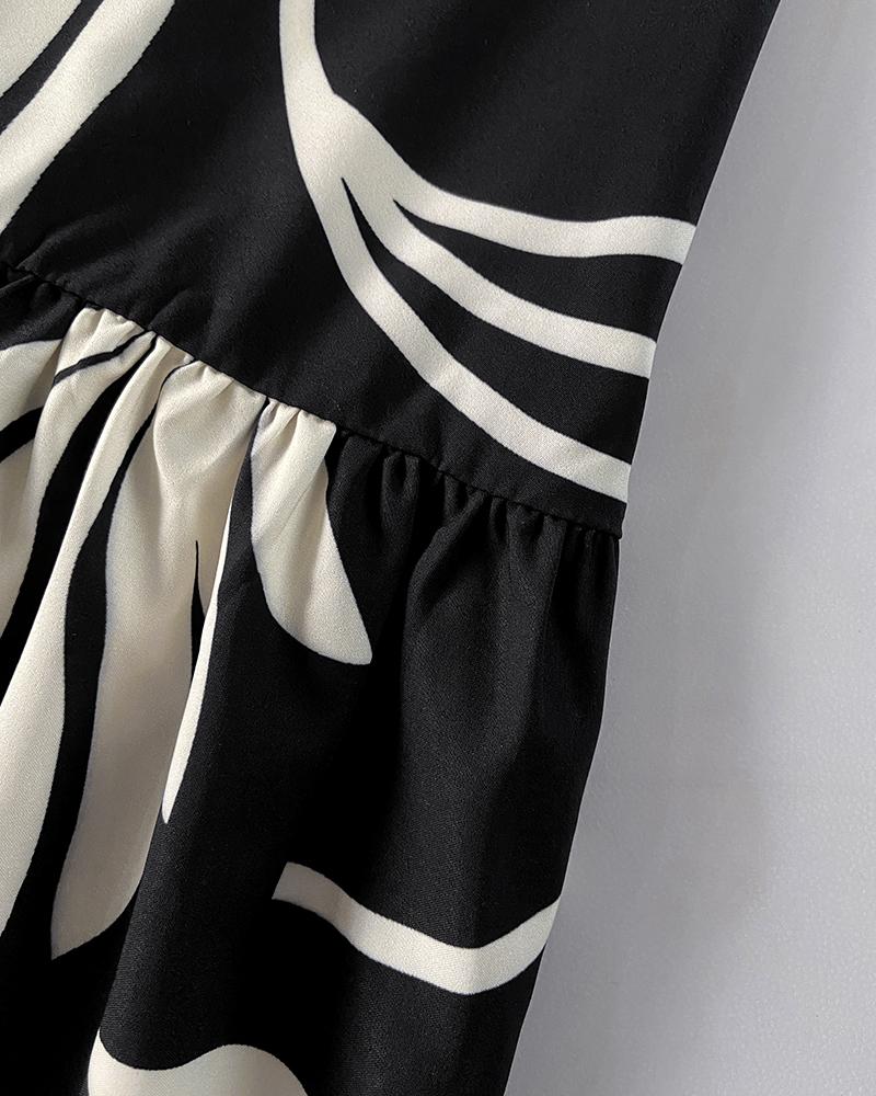 Floral Sleevless Leaves Pattern Maxi Dress Casual Waist Chain Decor Dress (Without Belt)
