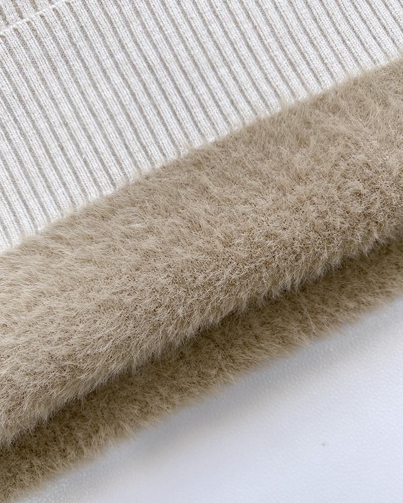 High Neck Knit Sweater Fleece Lined Front Button Basic Layering Soft Thermal Top