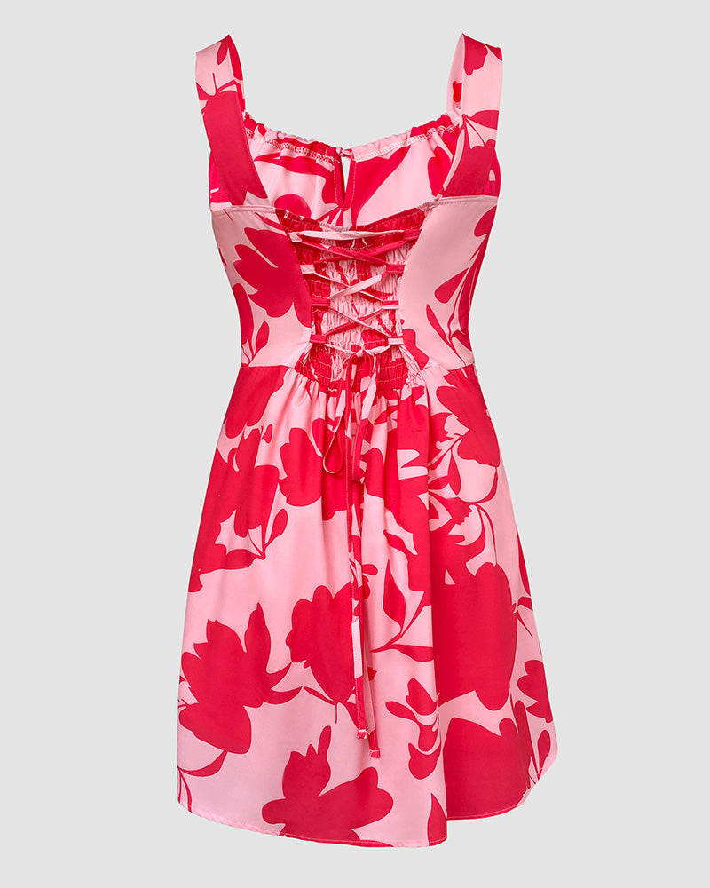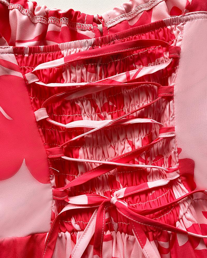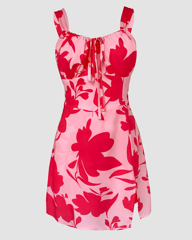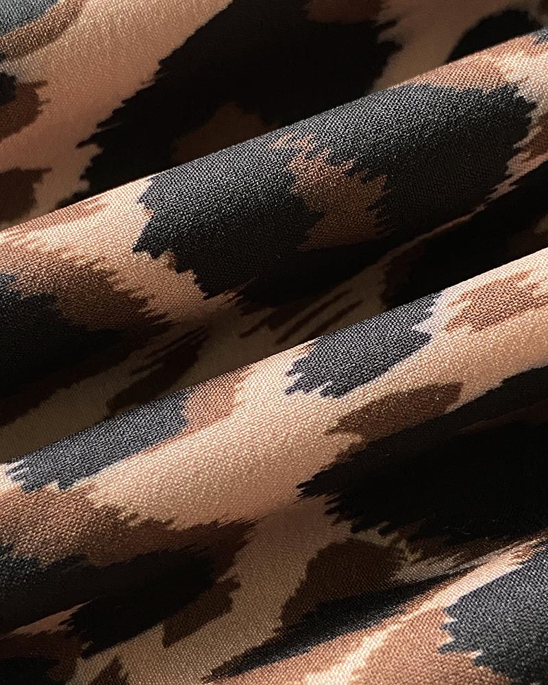 Leopard Square Neck Spaghetti Strap Romper Asymmetrical Lace up Slit Romper